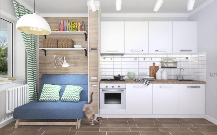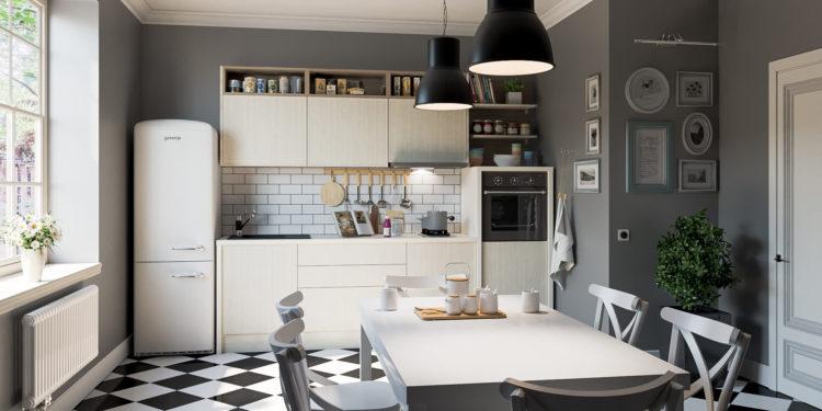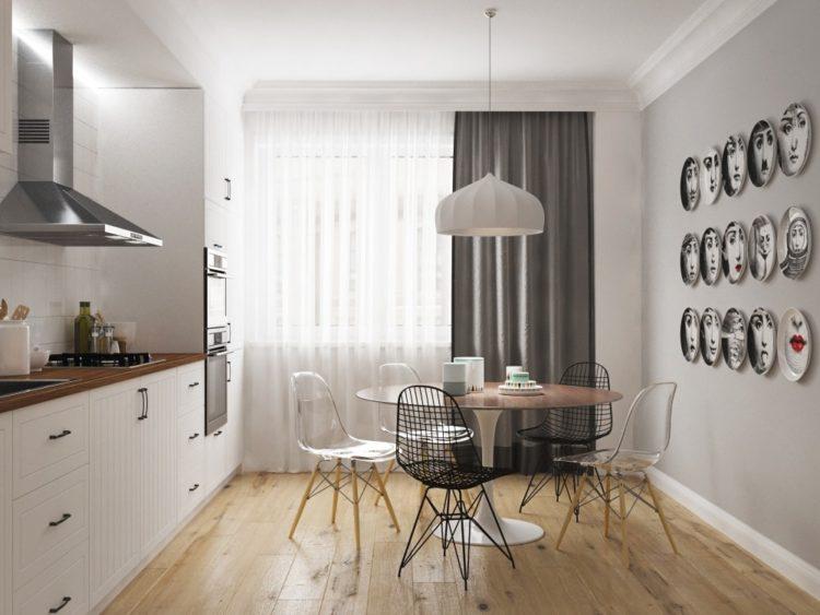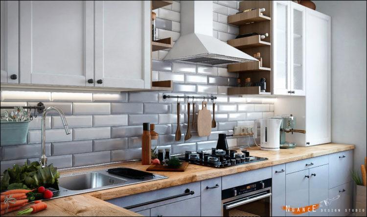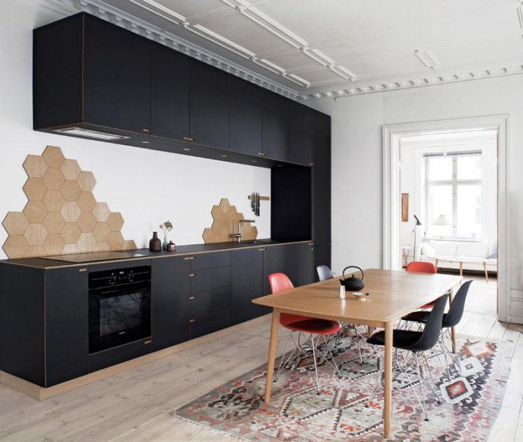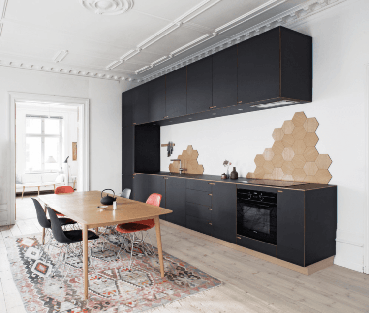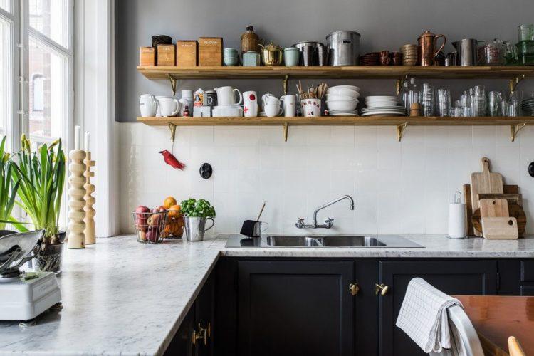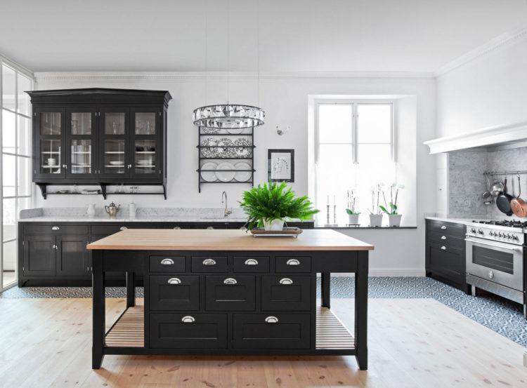 Escandinavia es una región fría y dura, donde el sol a menudo no es suficiente, por lo que los habitantes de esas regiones rechazan fundamentalmente el color oscuro en la cocina, usándolo solo en elementos y decoración. Los colores brillantes se usan con mayor frecuencia en la decoración, por ejemplo, en el diseño de un delantal de cocina, o se compran cortinas o platos brillantes. Las mesas y una unidad de cocina son preferibles a los tonos claros (aunque hay excepciones) o al color de la madera natural.