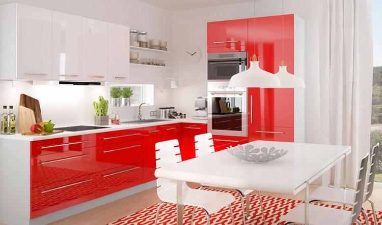 El color rojo no es natural, por lo que es muy raro en el interior. Una cocina de estilo escandinavo (la foto del interior que encontrará a continuación) puede incluir solo elementos rojos. O, como opción, los colores rojo pastel muy suaves pueden convertirse en uno de los colores del interior.