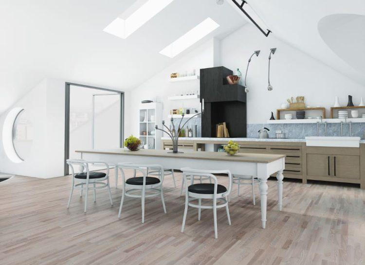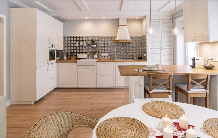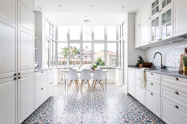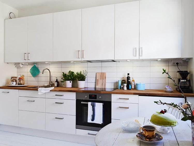 La cocina blanca de estilo escandinavo es la más común junto con el beige. Su combinación es aún más común. Para que la cocina blanca no parezca una "sala de hospital", debe diluirla con acentos brillantes al estilo escandinavo.