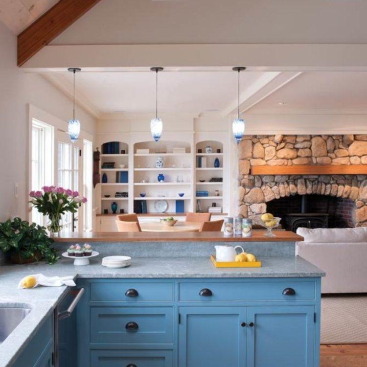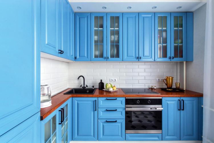 Si decide agregar el color azul noble de su cocina, el estilo escandinavo (foto a continuación) no lo evitará. El azul es el color del mar y en forma de acentos es muy bienvenido en la cocina escandinava.