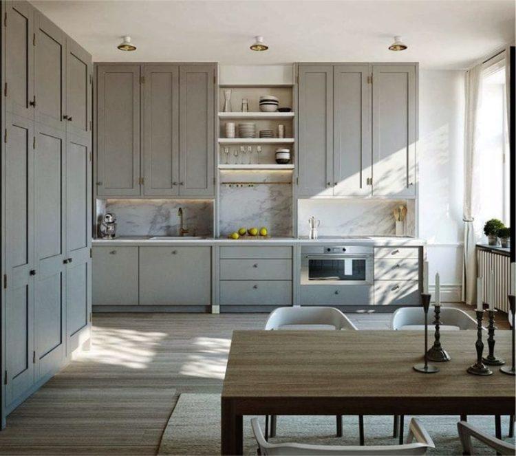 Al organizar una cocina grande y espaciosa, puede usar con seguridad colores oscuros y ricos.