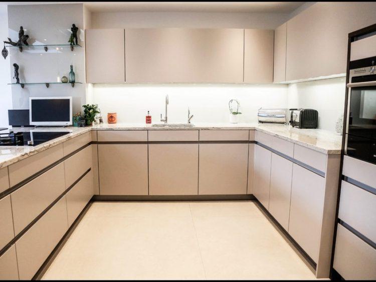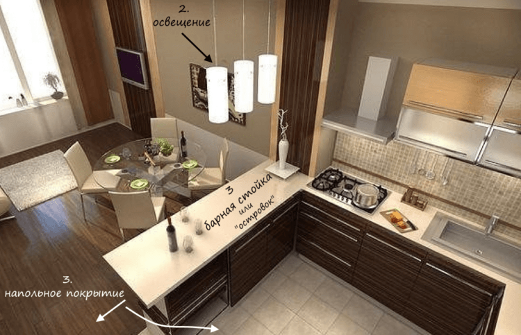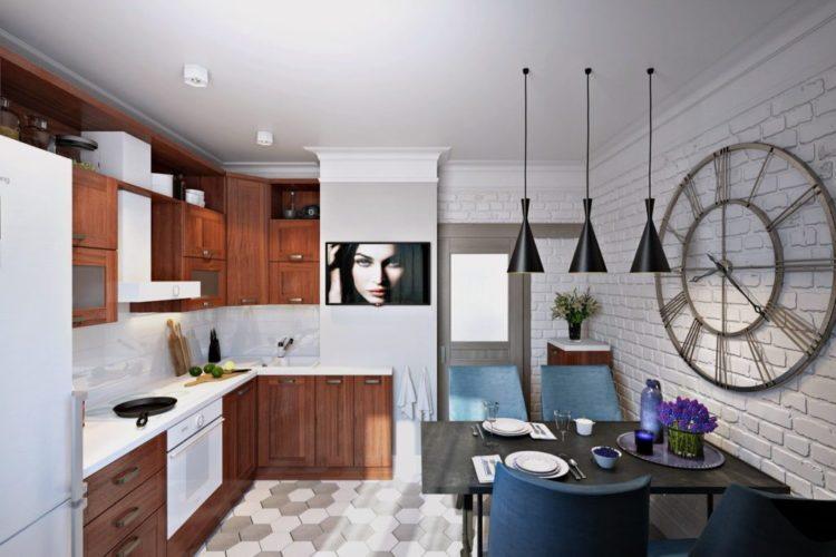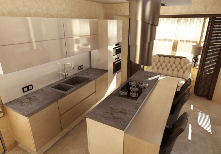 Aumentar visualmente el espacio será el diseño de la cocina en el estilo loft con tonos beige. También creará una sensación de ternura y paz en el interior.