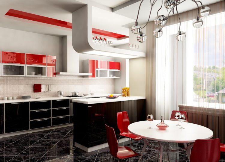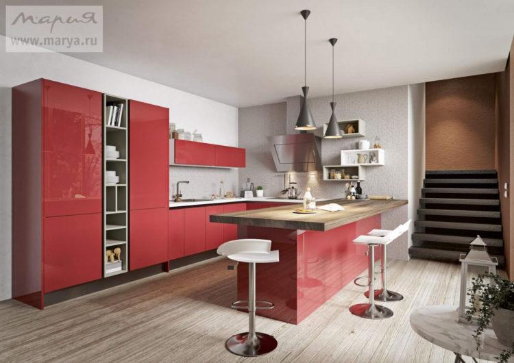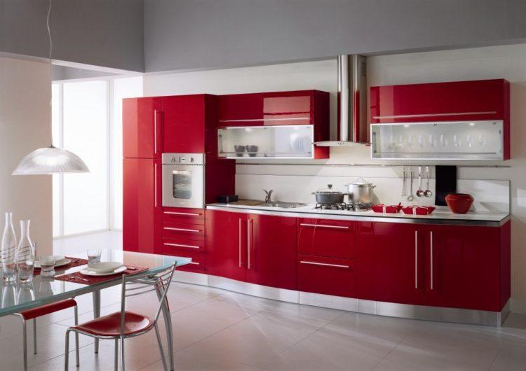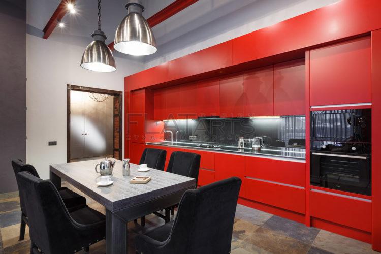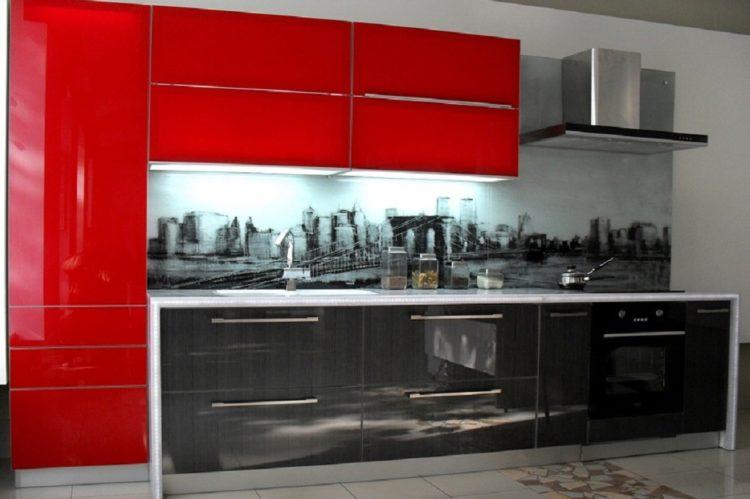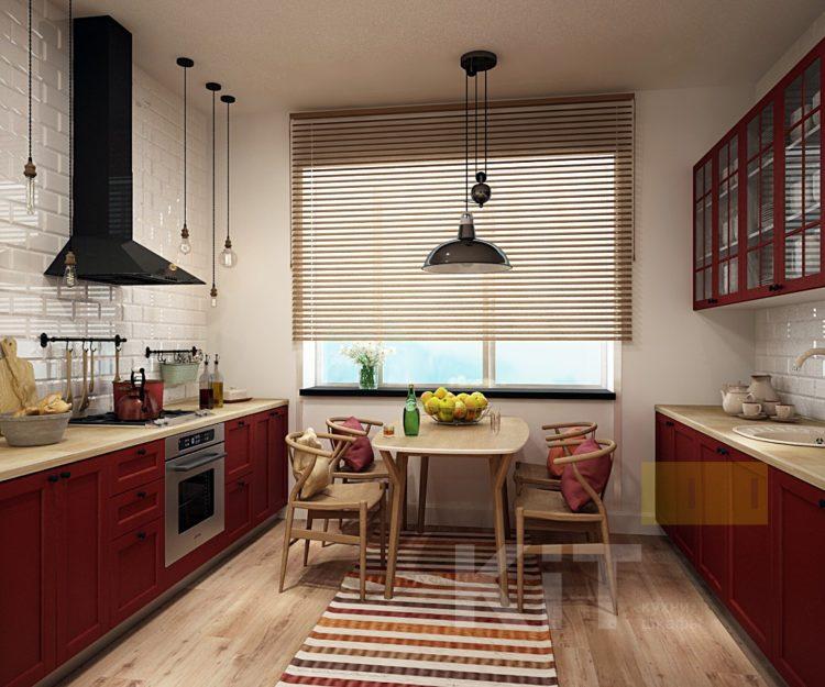 Usando el estilo loft rojo, la cocina se volverá aún más brillante, y las fachadas ricas de la cocina y un delantal se pondrán al día debido a su color rojo.