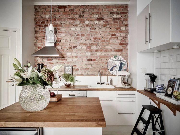 La cocina blanca de estilo loft escandinavo es un excelente ejemplo de una cocina tipo loft en un interior económico, que combina la sofisticación escandinava y el loft grosero, además de hacer que el espacio sea más abierto.