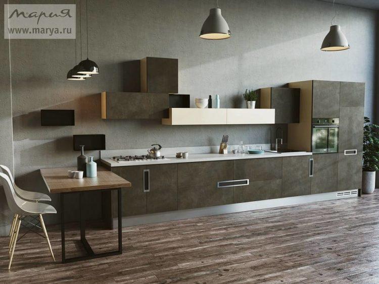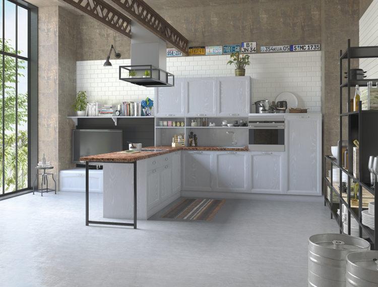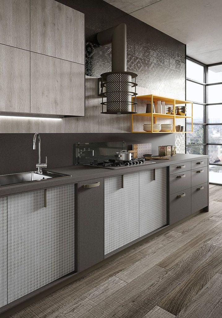 Muy minimalistas y perfectamente en armonía con la simplicidad de las paredes son las cocinas de estilo loft gris, cuyas fotos se muestran a continuación.