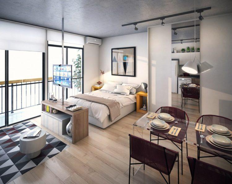 A pesar de que la decoración utilizará materiales económicos, muebles estándar y un diseño tradicional, el resultado es un espacio muy acogedor y tranquilo, agradable para estar. Incluso en un área pequeña, puede colocar habitaciones separadas, una cocina luminosa, una habitación separada para la sala de estar e incluso un vestidor.