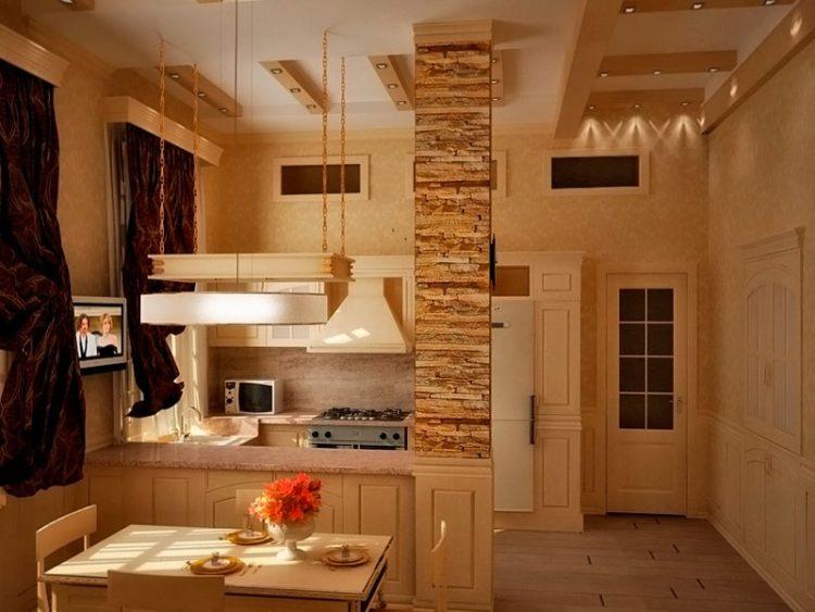 Las pequeñas cocinas de color beige nunca pasarán de moda. Este color es universal y combina muy bien con otros tonos. Incluso mirando la foto, la cocina en la que está hecha en color beige, inmediatamente sientes ligereza y sofisticación.