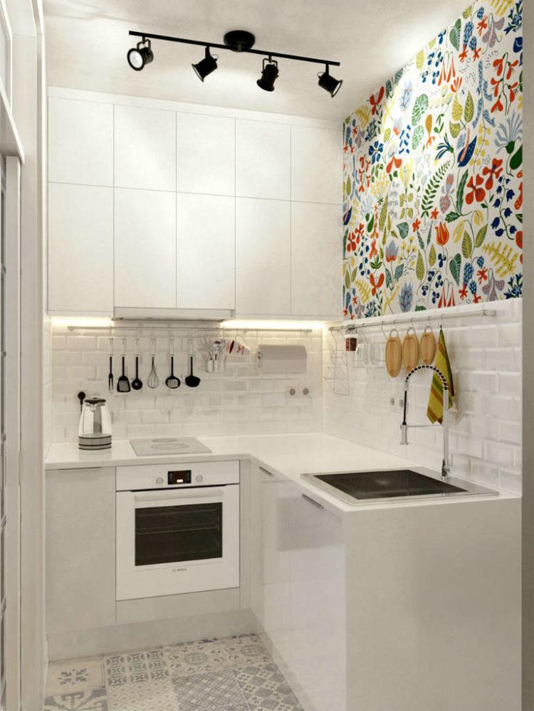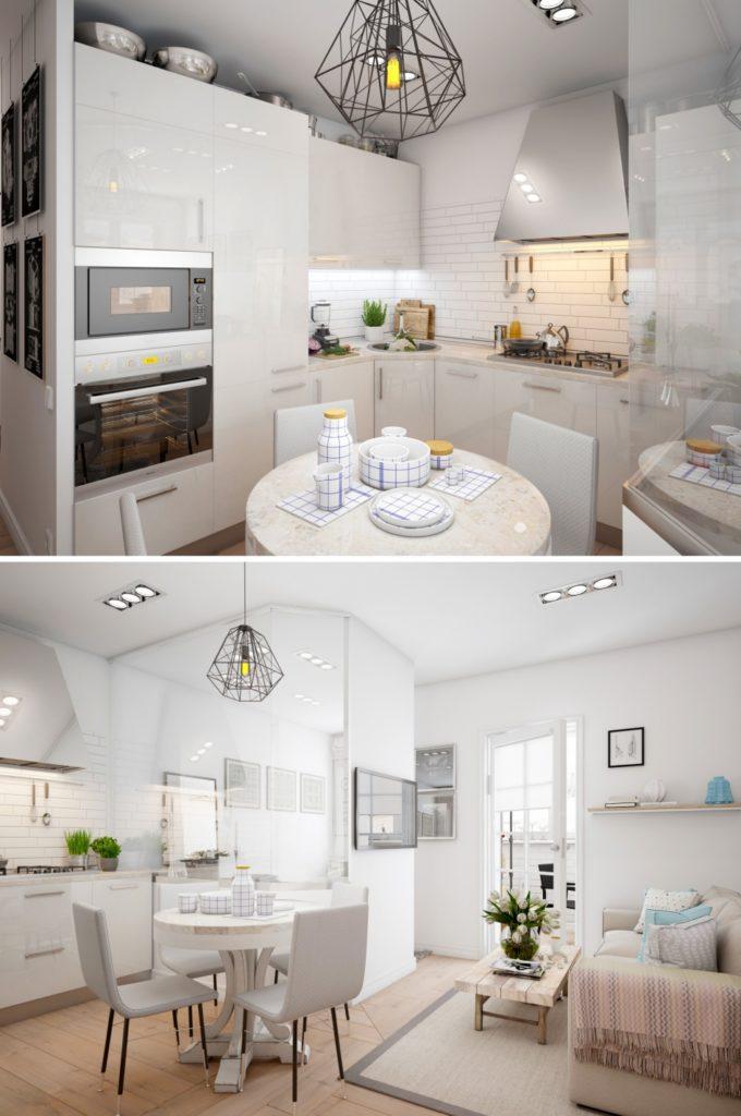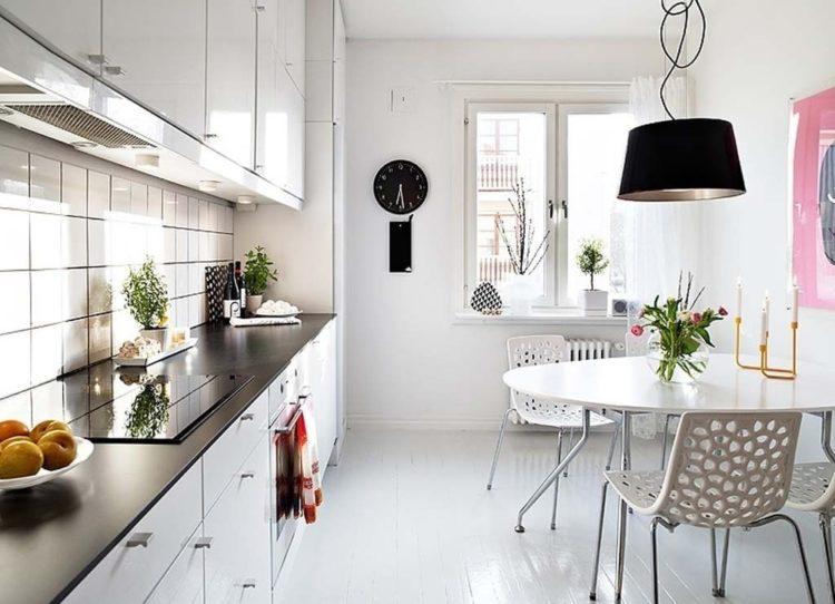 El diseño de una pequeña cocina en blanco será mucho más simple debido al aumento visual en el espacio.
