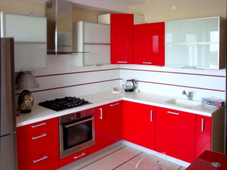 El diseño de cocinas pequeñas en colores brillantes se considera el mejor. Las superficies brillantes lo harán visualmente más grande.