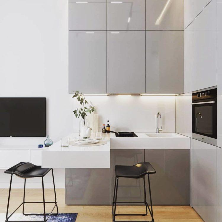 Si tiene una cocina pequeña, el interior gris lo hará austero, elegante y rico.