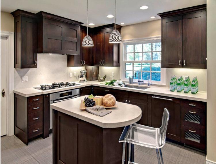 Si desea realizar reparaciones en una cocina pequeña con marrón, no elija tonos demasiado oscuros.