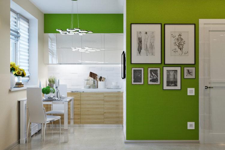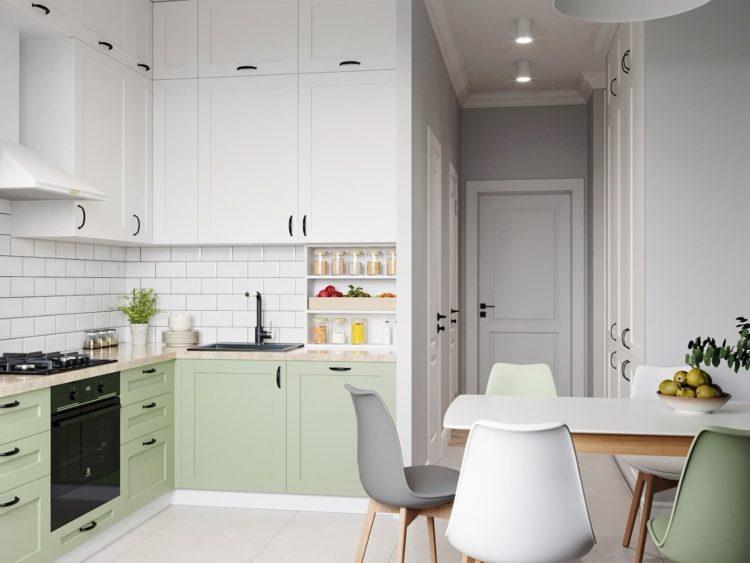 El delicado color verde es perfecto para diseñar una cocina pequeña, si la alterna con colores claros.