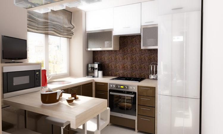 Después de todo, es más difícil desarrollar el interior de una cocina pequeña que para una común, es una broma cuando la cocina ocupa solo 4-5 cuadrados, pero debe acomodar la placa, el fregadero, los electrodomésticos grandes y pequeños. Afortunadamente, los diseñadores de interiores saben cómo equipar muy bien una cocina pequeña en un apartamento pequeño y al mismo tiempo usar, equipar y amueblar los muebles correctos con cada uno de los centímetros disponibles.