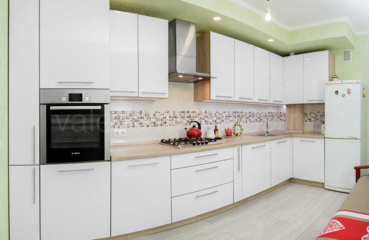 El blanco refleja las ondas de luz, por lo que una cocina de esquina blanca para una cocina pequeña es la solución más ventajosa.