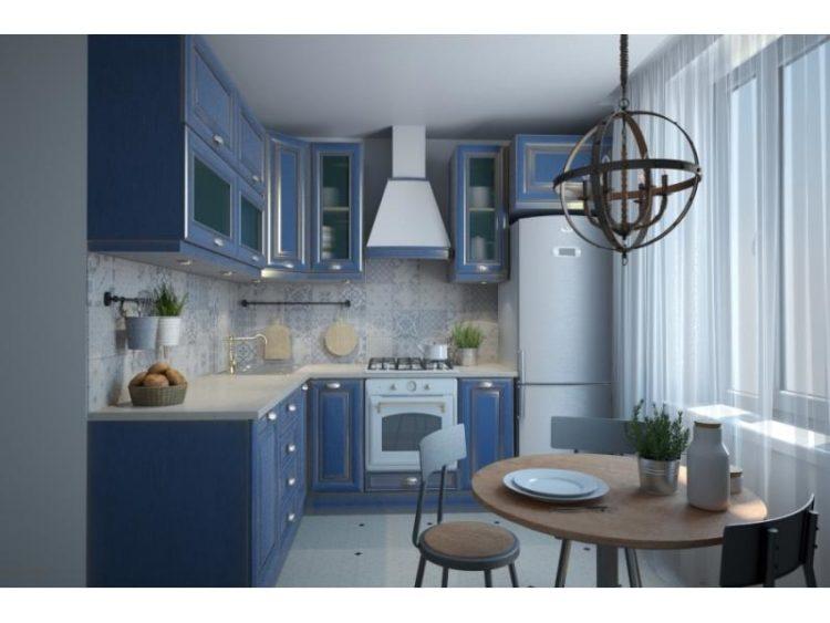 Vea lo buena que es una cocina de esquina para una cocina pequeña: una foto en tonos de azul. De lavanda suave a ultramar.