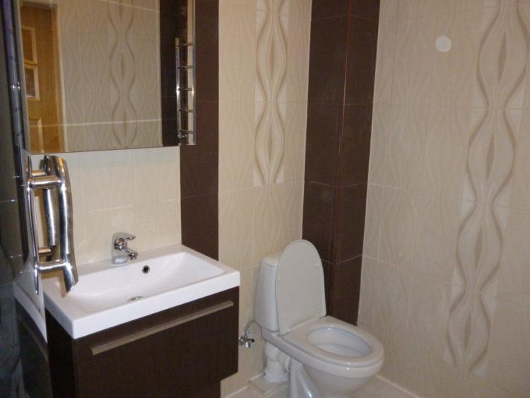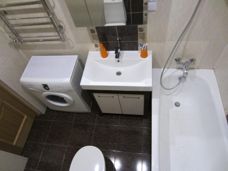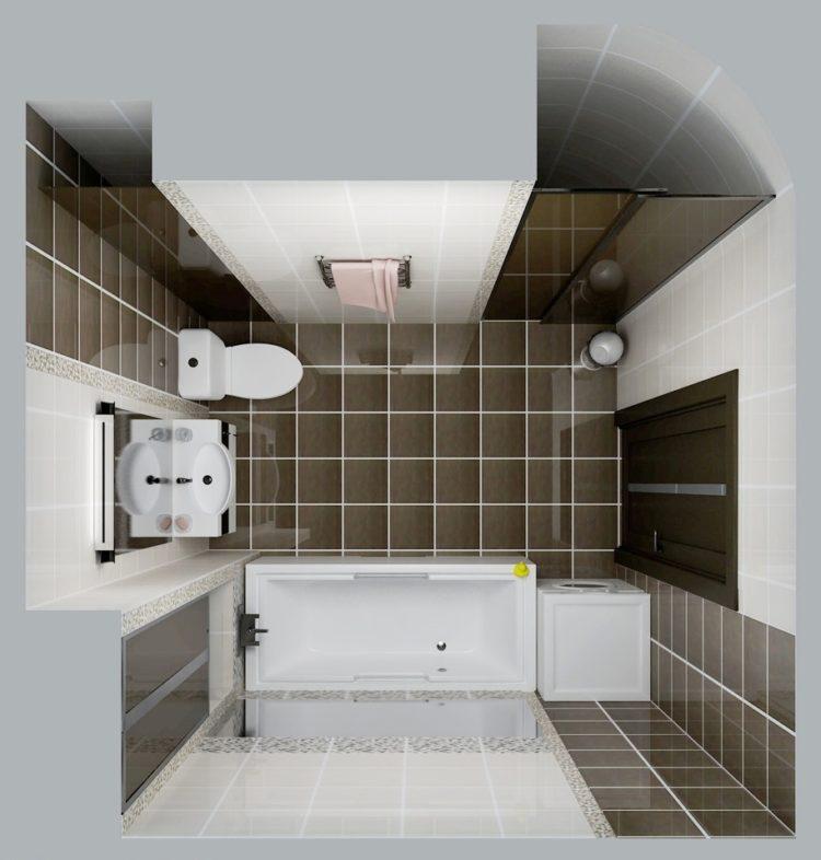 Las variantes de tonos marrones dan una sensación cálida y agradable. Si le gusta un baño marrón de 3 metros cuadrados, el diseño (ver foto a continuación) se puede hacer en hermosos tonos chocolate.