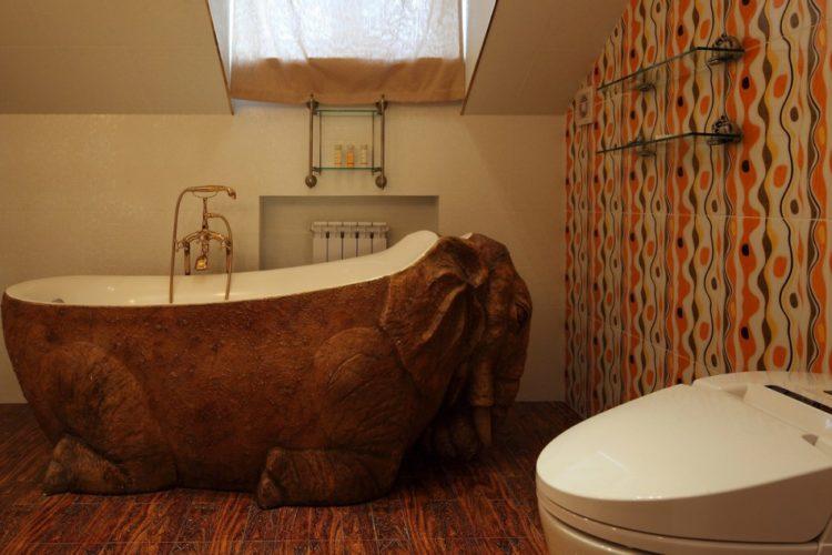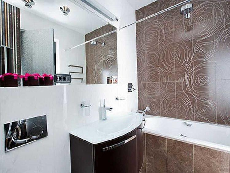 El color negro delineará los detalles y acentos. Esto puede parecer que su bañera tiene 3 metros cuadrados, el diseño (foto que encontrará aquí) en colores negros se ve bastante original e inusual.