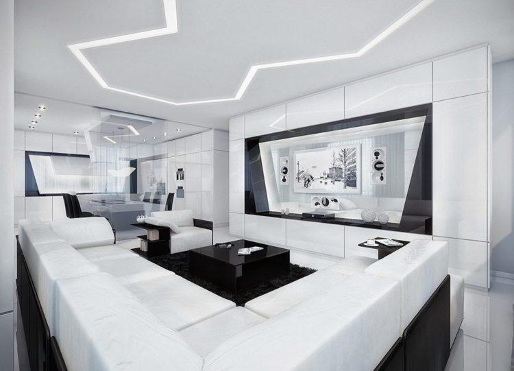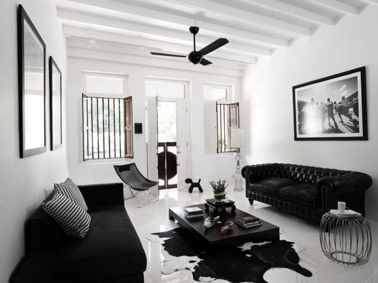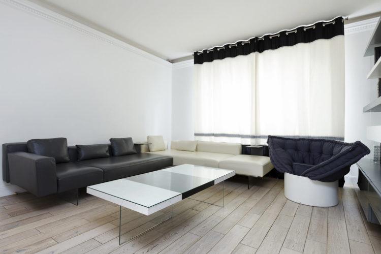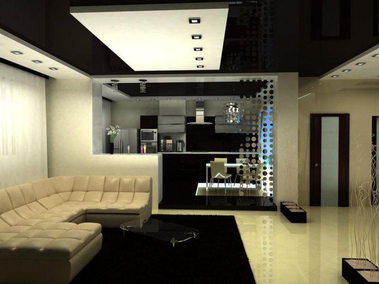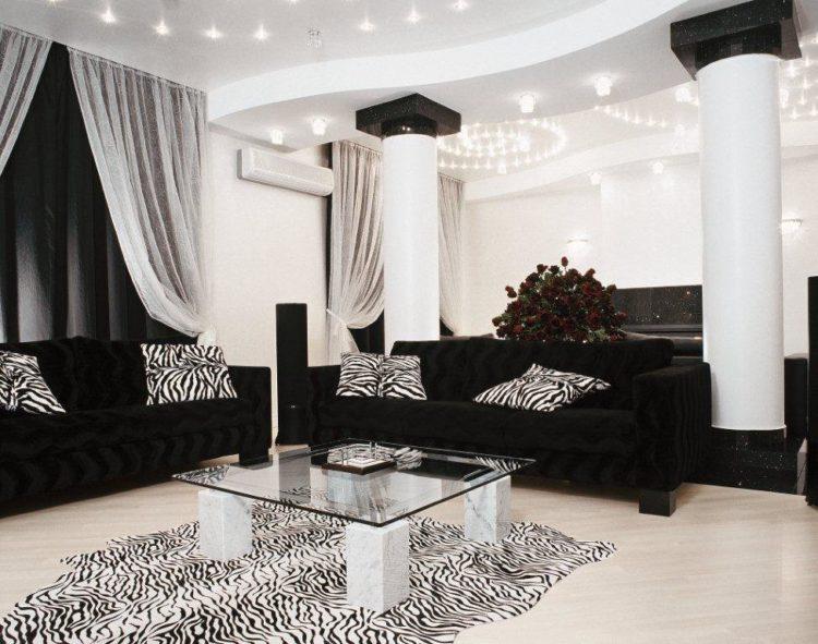 El color negro puede ser una forma espectacular de crear el interior de un gabinete aristocrático. Sin embargo, su uso excesivo puede afectar la psique humana con sentimientos depresivos y depresión. Si los propietarios de la sala de estar no están seguros de su gusto personal, entonces quizás debería evitar el uso de negro en el interior. Compañeros de fondo de pantalla en blanco y negro, ejemplos de fotos para el salón: