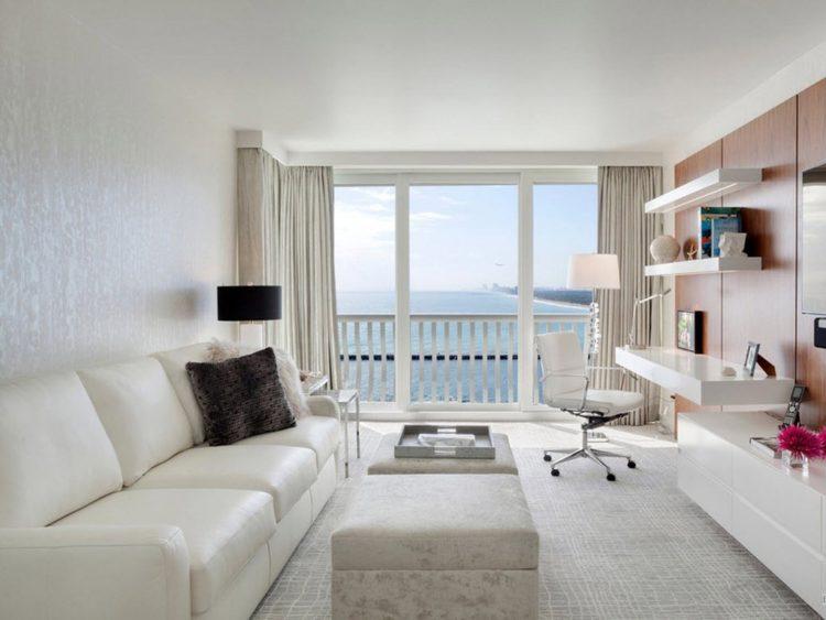 El color blanco y sus tonos de leche, linaza, crudo, marfil llenan el espacio con una sensación de volumen y altura, contribuyen a la armonía y la energía. Con la ayuda de fondos de pantalla claros, se crean salas de estar increíblemente acogedoras. El único inconveniente del papel pintado blanco y casi blanco puede considerarse que el polvo, la suciedad y otras impurezas en las paredes brillantes son más notables. Por lo tanto, si su familia tiene un hijo con un deseo activo de realizar sus aspiraciones artísticas en papeles pintados claros, piense algunas veces si la creatividad de los niños en las paredes de la sala es aceptable para usted.