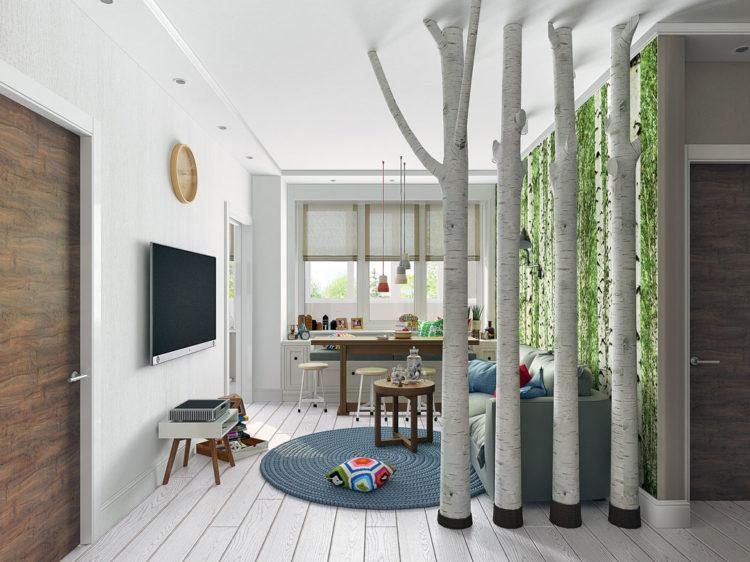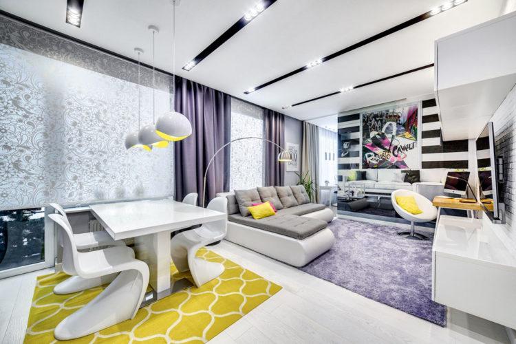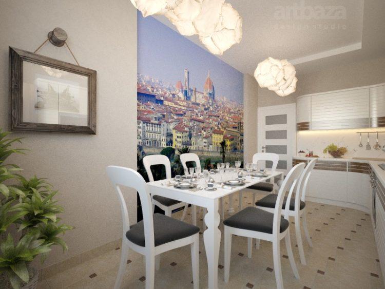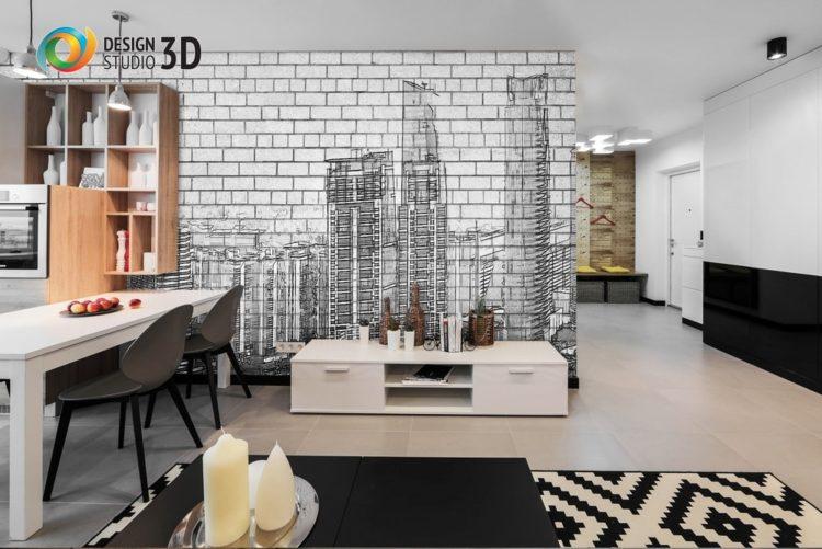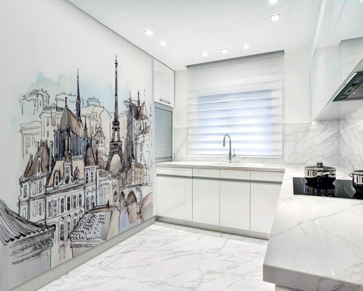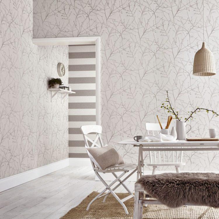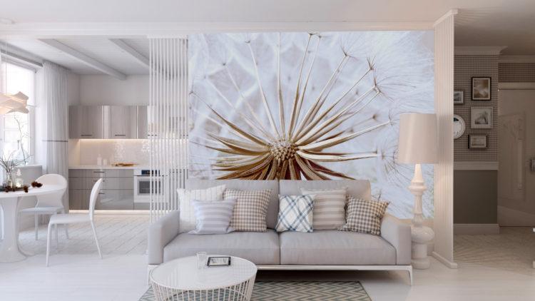 El diseño del papel tapiz en blanco llenará la habitación de aire. Además, este color combina bien con tonos ricos y vibrantes.