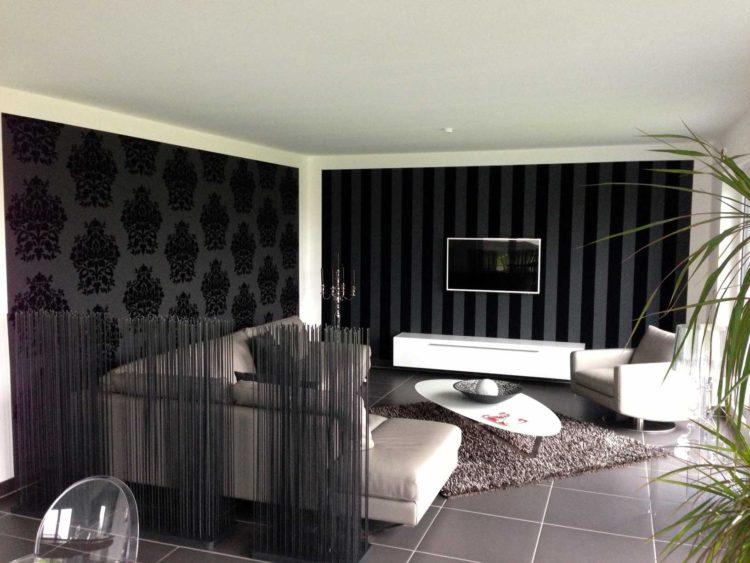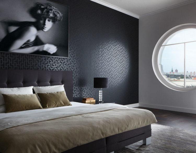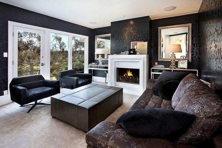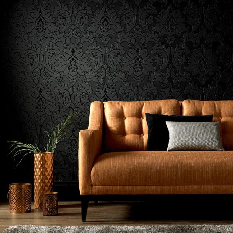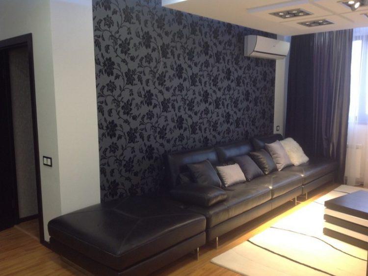 Los fondos de pantalla de la novedad en negro son adecuados para personas valientes. Este color se considera muy conflictivo, pero, sin embargo, ennoblece la habitación y se ve muy elegante y moderno.