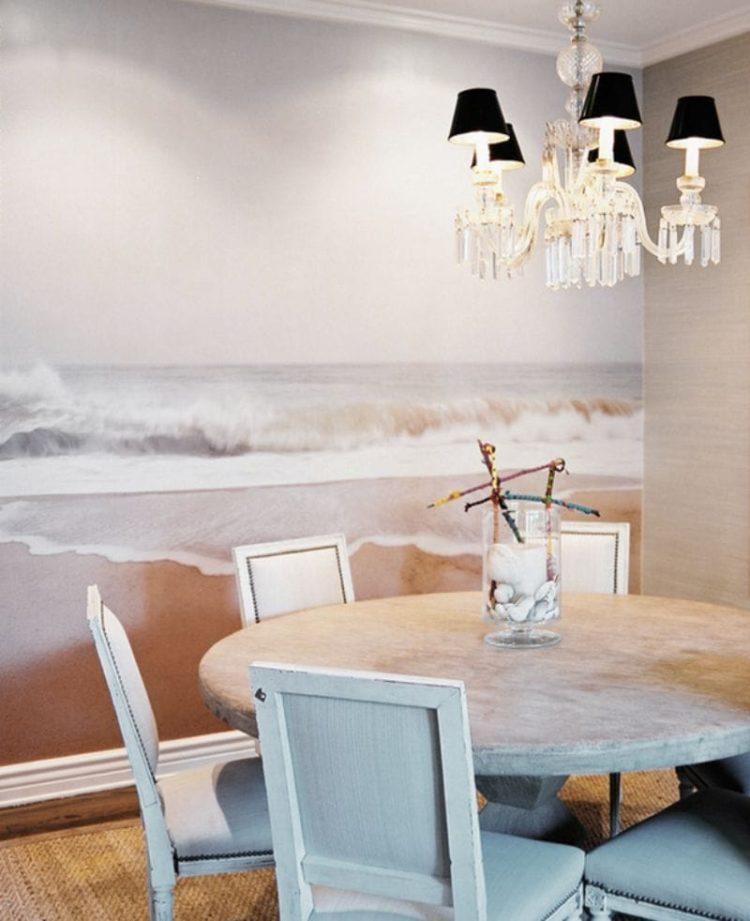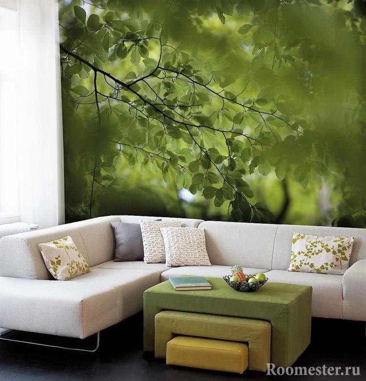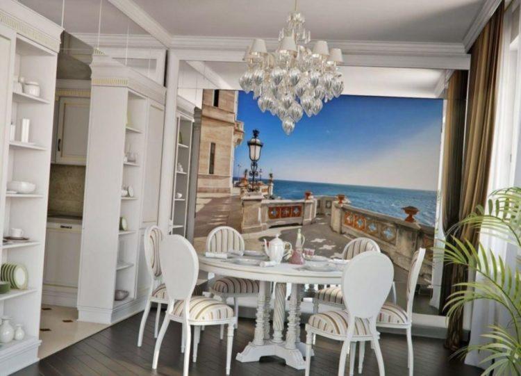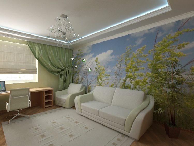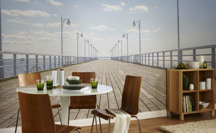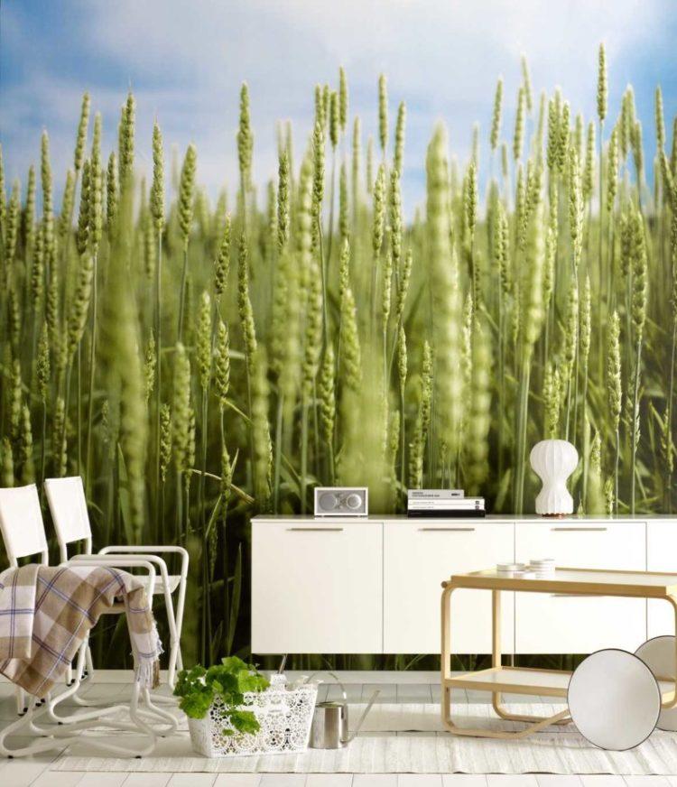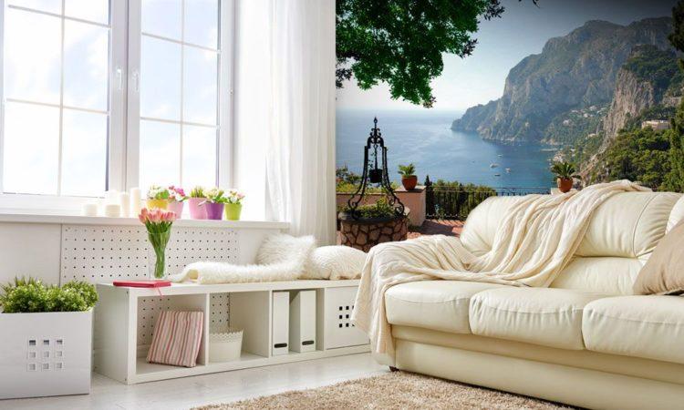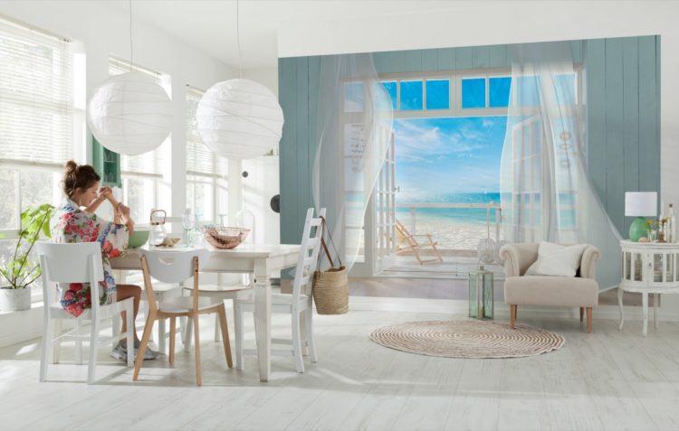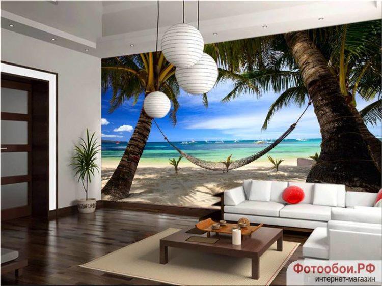 Las fotos publicadas a continuación transmiten inmediatamente una atmósfera de calma. Tales papeles pintados acentúan perfectamente cualquier otro color del interior.
