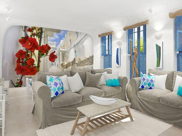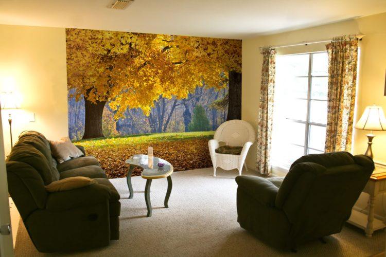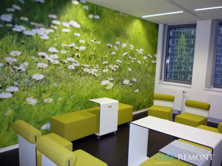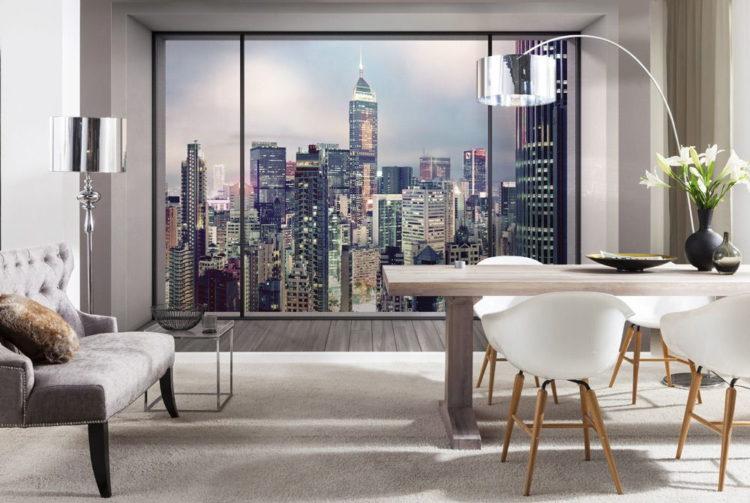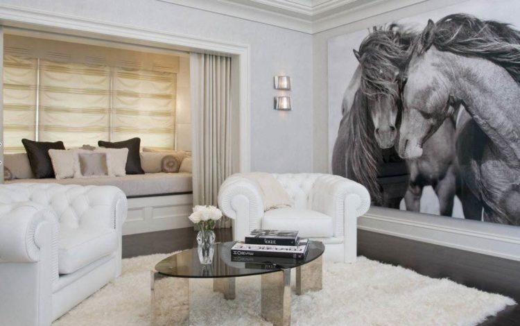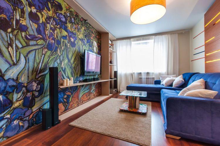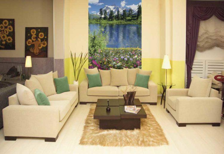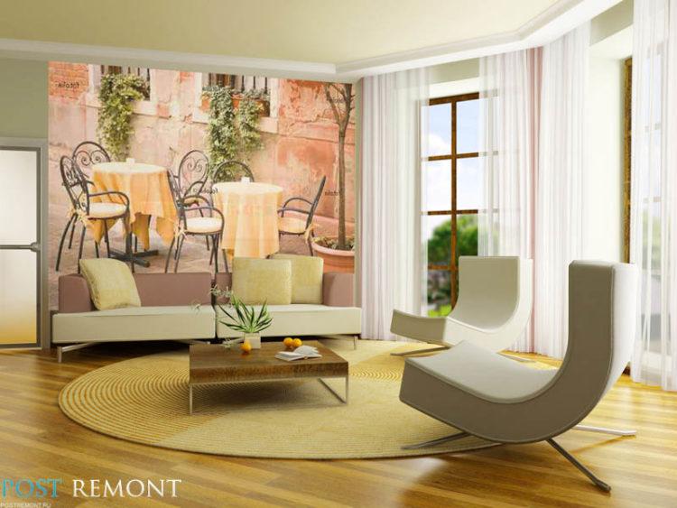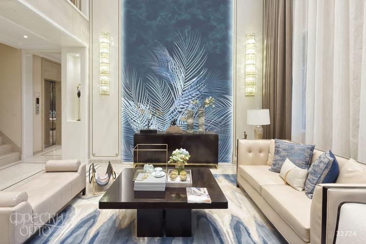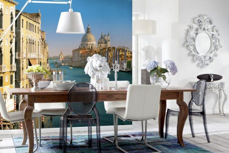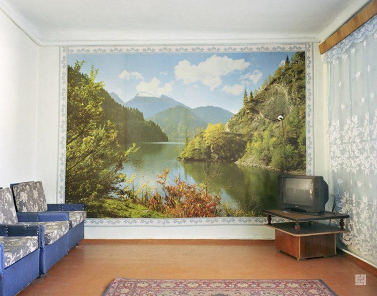 Las fotos publicadas a continuación transmiten inmediatamente una atmósfera de calma. Tales papeles pintados acentúan perfectamente cualquier otro color del interior.