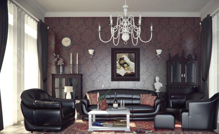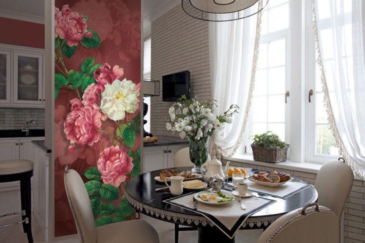 El papel tapiz, cuyo diseño está hecho en color oscuro, es mejor diluirlo con elementos interiores más neutros y claros.