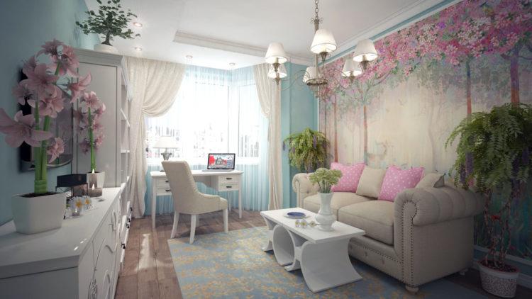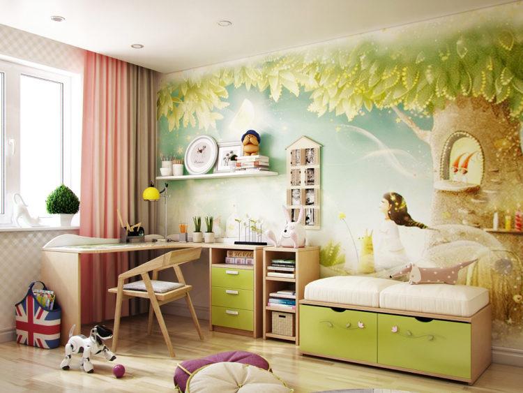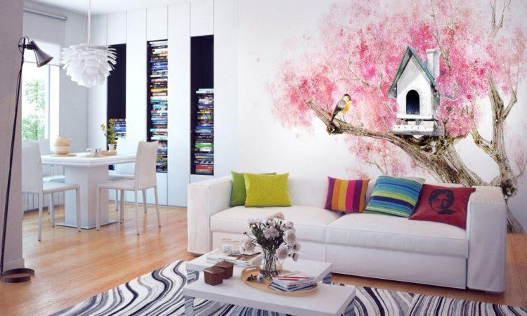 Los papeles pintados en colores brillantes amplían visualmente la habitación y combinan bien con cualquier color de muebles.