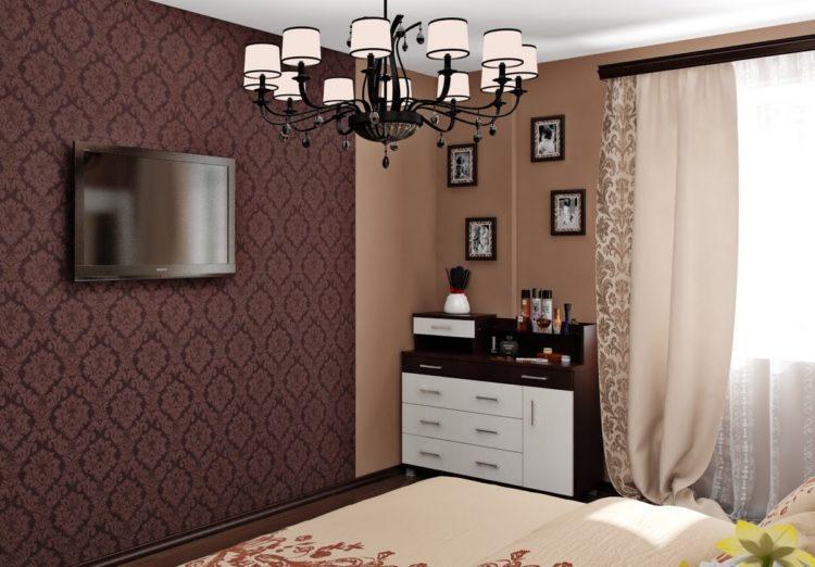 El diseño de la habitación, cuyo fondo de pantalla está hecho en marrón, no tiene que crear una atmósfera opresiva. La combinación de café, chocolate y un toque de cacao con leche es ideal.