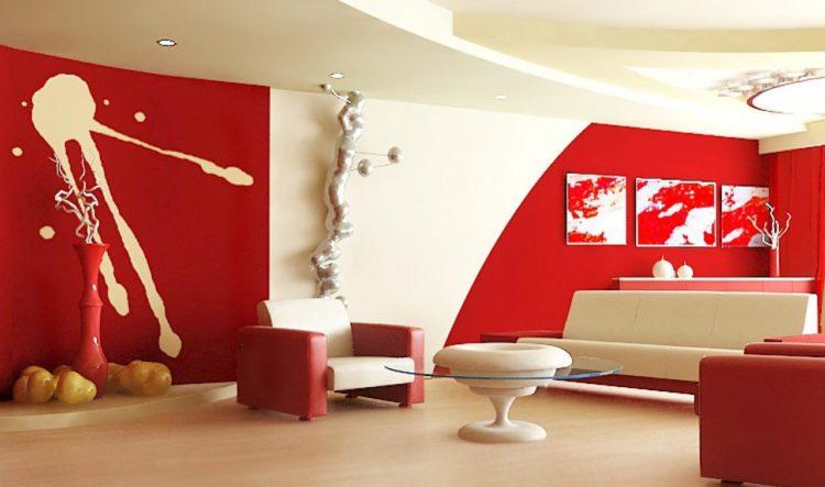 El color rojo llama la atención y excita la psique. Este color debe usarse con precaución, ya que reduce visualmente la habitación.