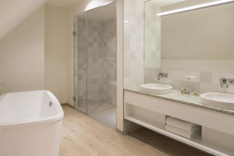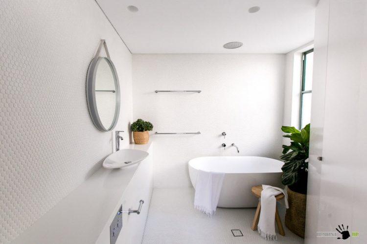 Es muy conveniente sostener el interior del baño en blanco. Calma, es un símbolo de limpieza y tiene una relajación completa mientras nada.