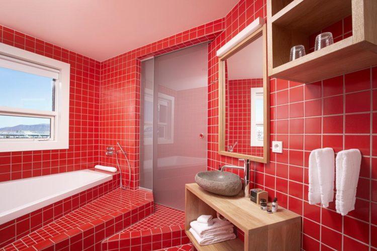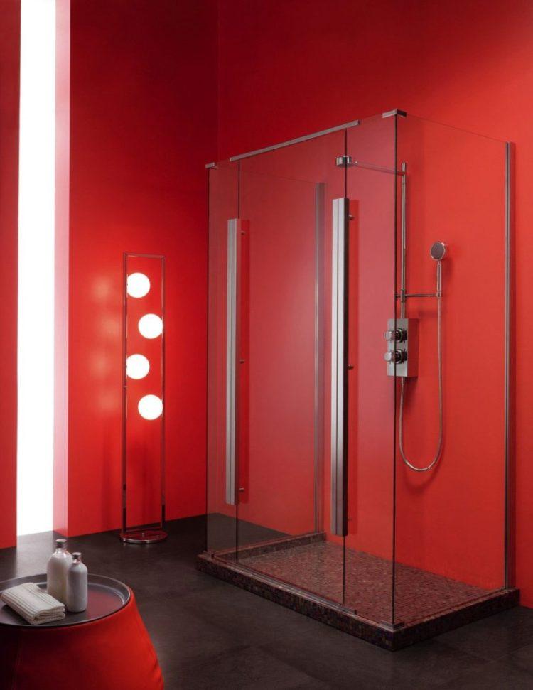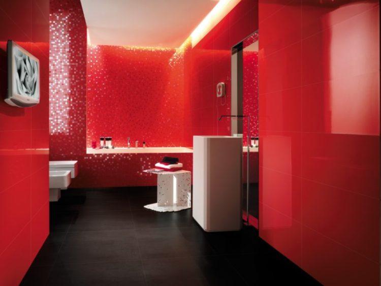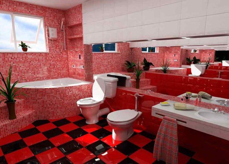 No importa en qué tonos de rojo esté diseñado su baño, la luz principal necesariamente debe ser del techo.