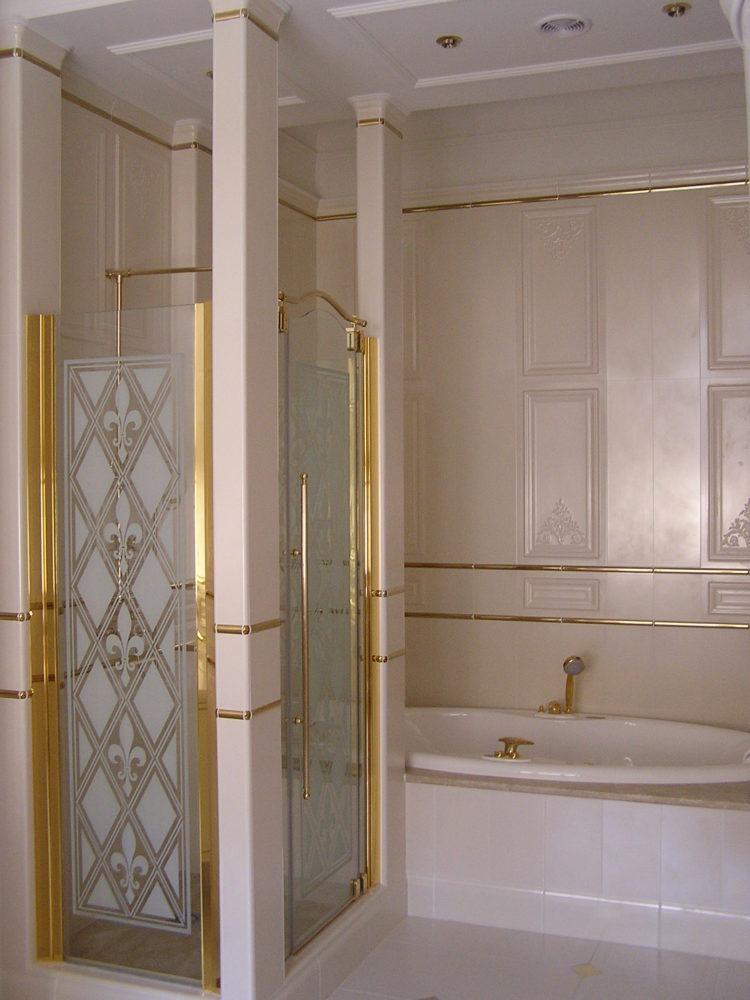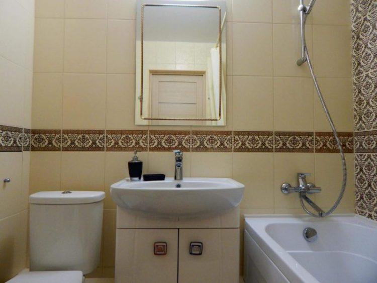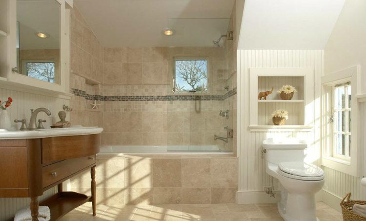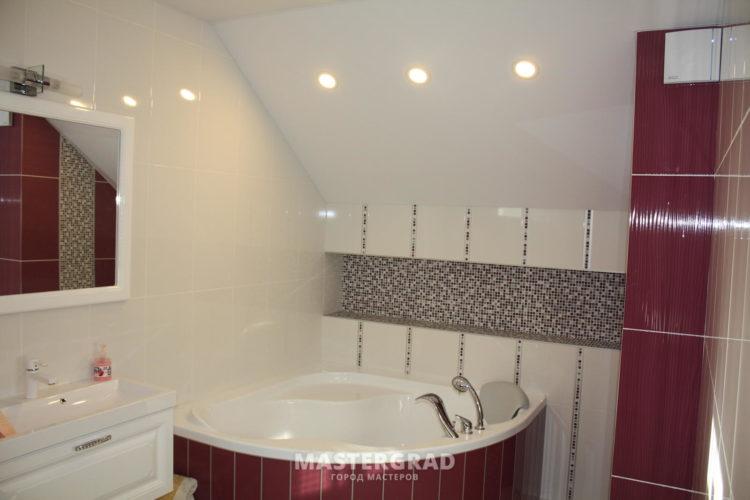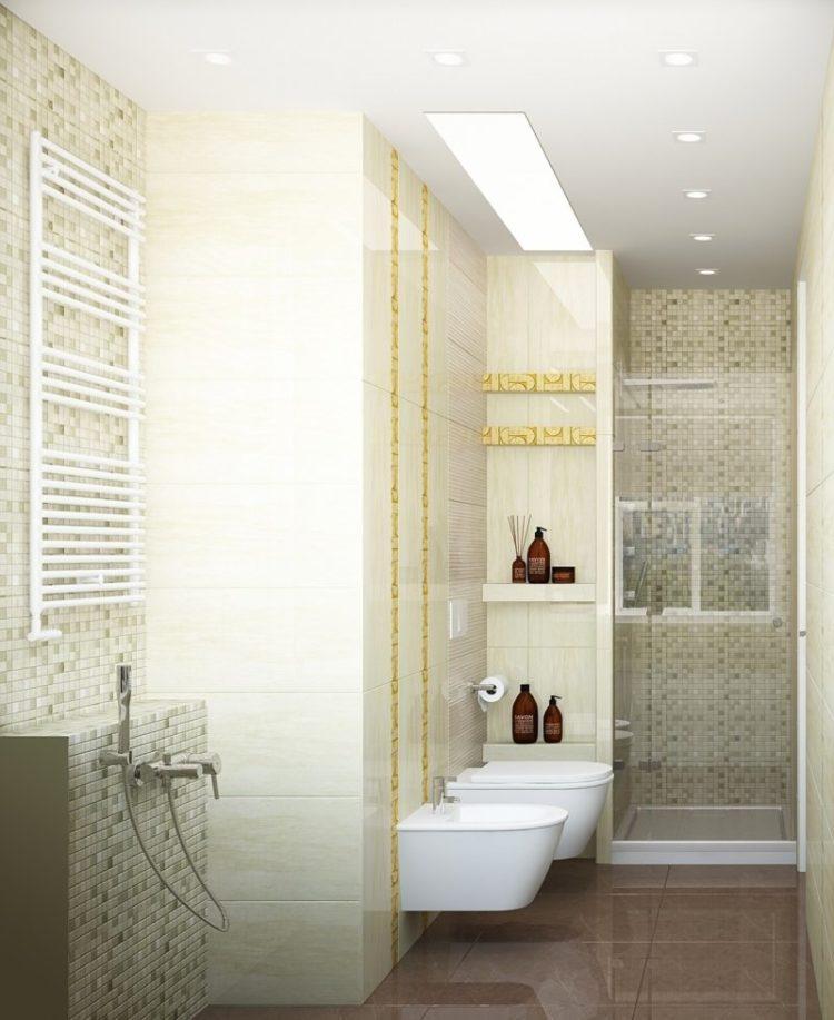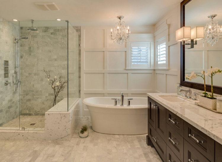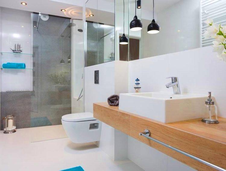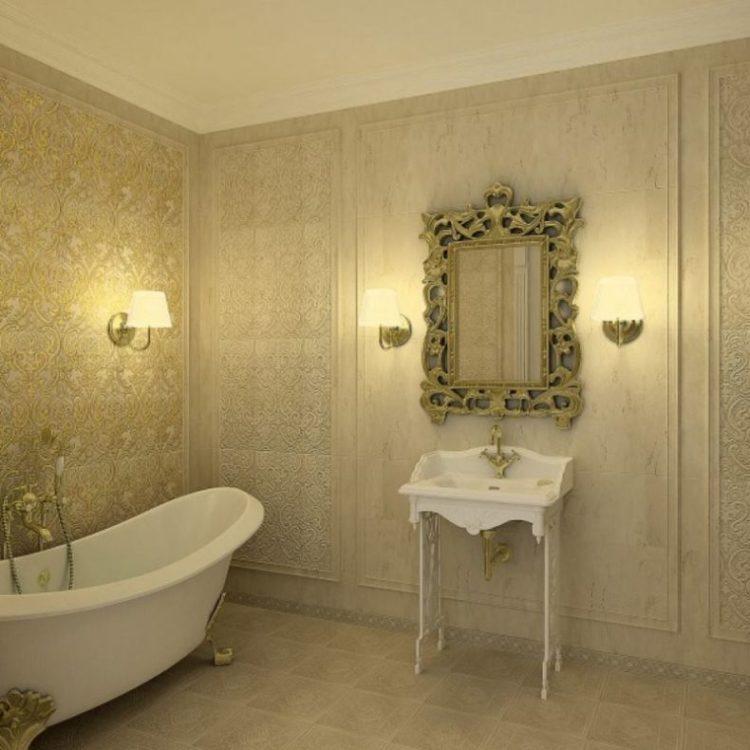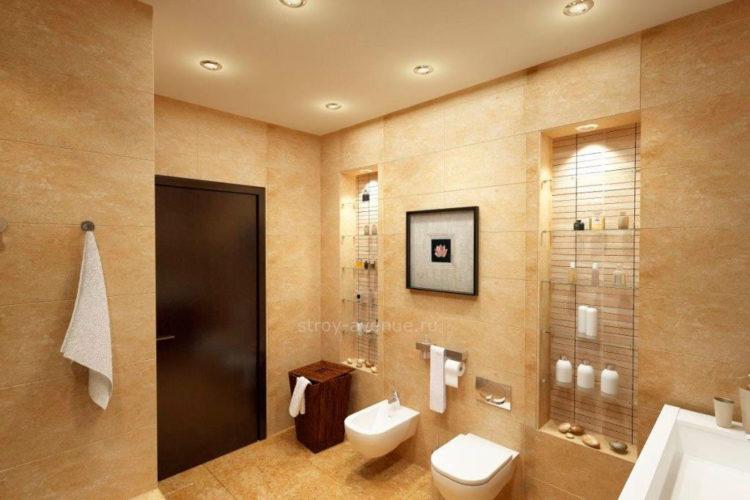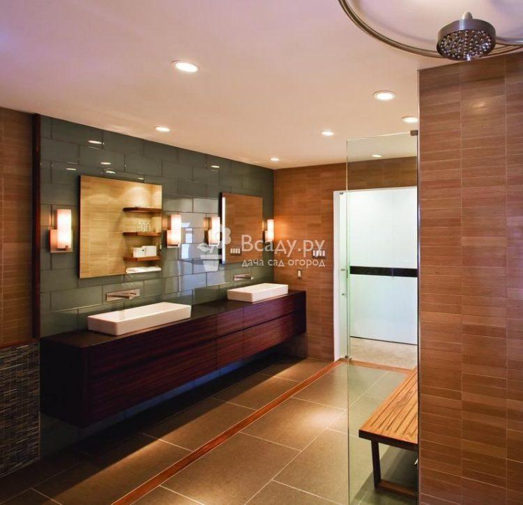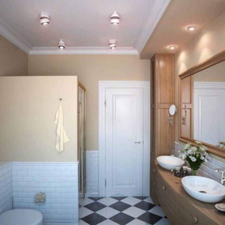 Una versión más clásica del diseño del baño. La luz para el baño en este color es mejor para elegir el techo. Las bombillas LED son ideales.