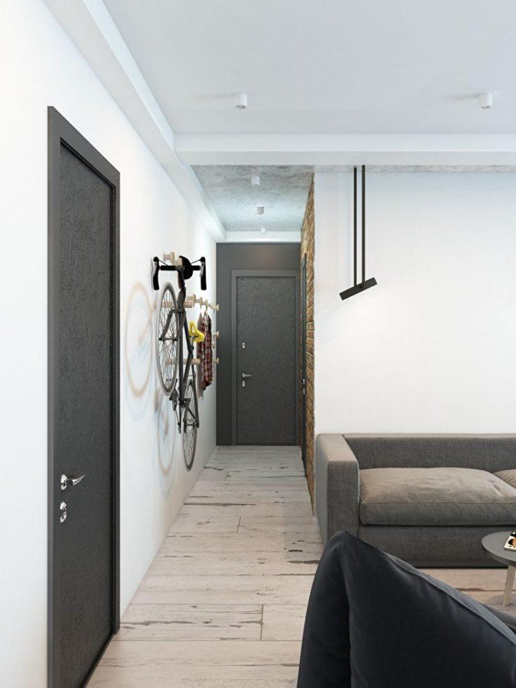 Para no sobrecargar el corredor con detalles innecesarios, elija un fondo gris o gris oscuro, si el espacio lo permite.