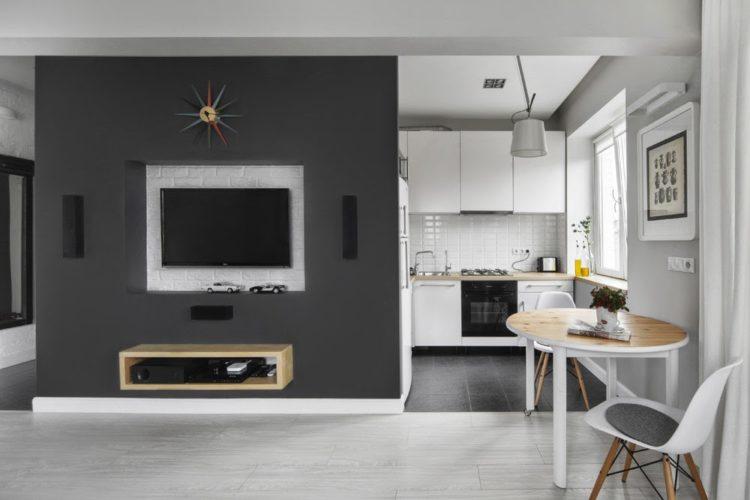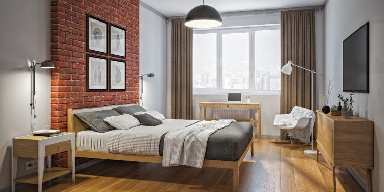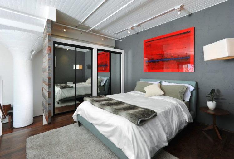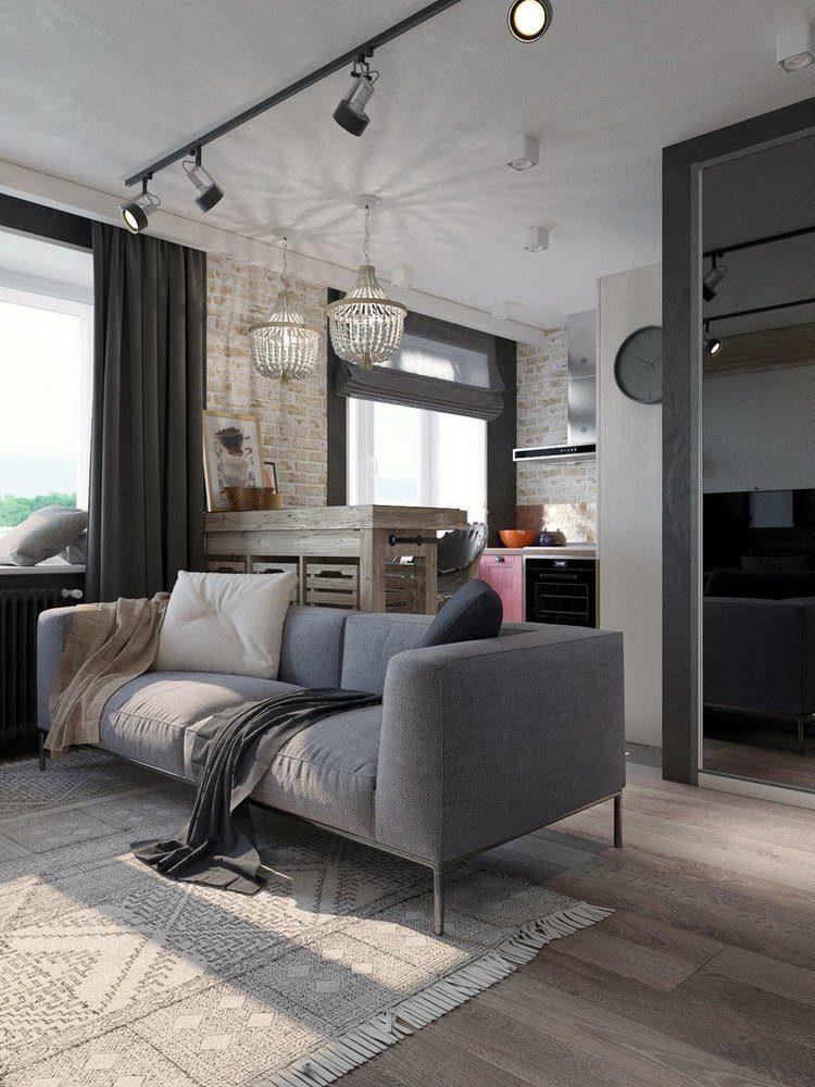 La zona de loft debe parecerse a un taller de fábrica convertido en vivienda. Los papeles pintados grises claros, complementados con ladrillos, reflejan perfectamente el estilo loft.