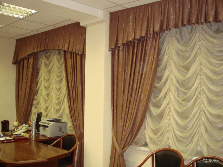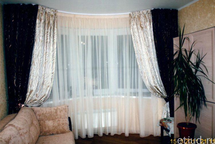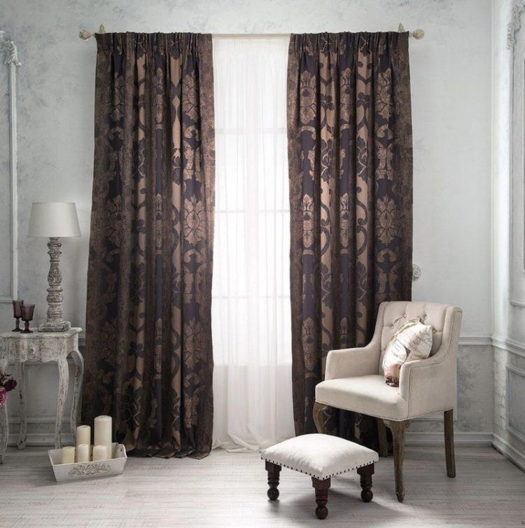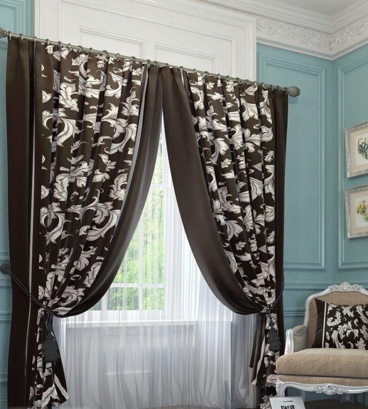 Las cortinas para la sala de estar, cuyas fotos se ven a continuación, se presentan en tonos oscuros. Esta es una gran opción para aquellos que diseñan una habitación en colores brillantes, luego las cortinas oscuras contrastan con una habitación luminosa.