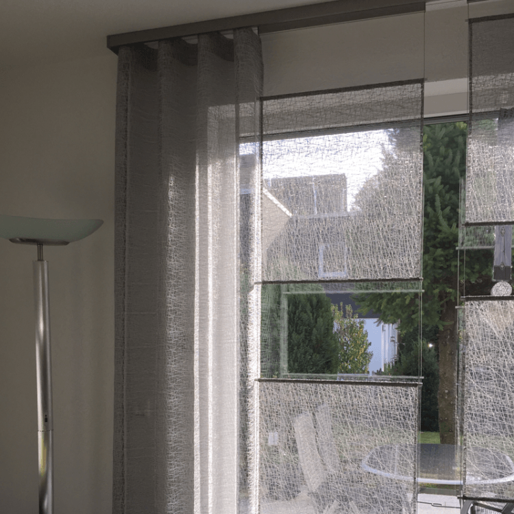 al contenido ↑Cortinas de cortinas claras para la sala de estar.
