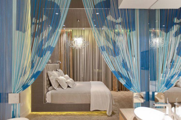 Las cortinas en la sala de estar en tonos azules se verán muy hermosas, pero todo depende de los colores en los que esté hecha la sala. Si prevalecen los tonos cálidos de azul y azul, elija colores cálidos similares para las cortinas, y viceversa, si prevalecen los tonos fríos, elija tales cortinas, cortinas o cortinas.
