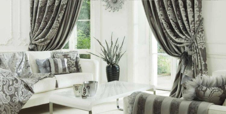 Si desea elegir un diseño de cortina gris para su sala de estar (vea la foto de los ejemplos a continuación), considere hacer que las cortinas se degraden.Combina todos los tonos de gris, así como blanco y negro para el contraste.