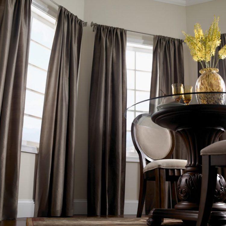 A menudo se utilizan opciones para cortinas en tonos de gris, que combina bien con varios colores de muebles.