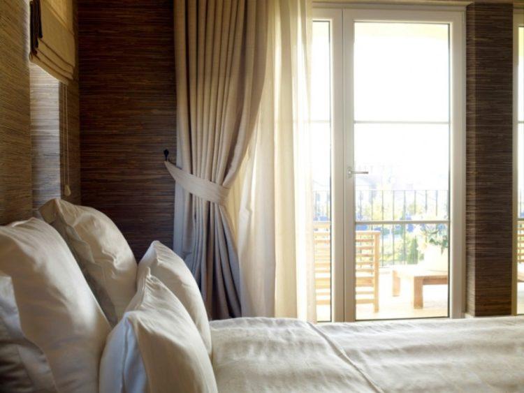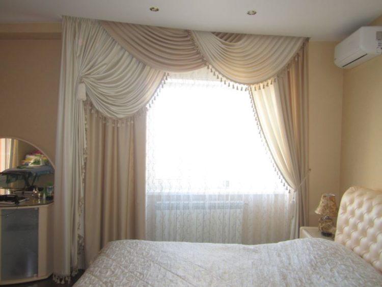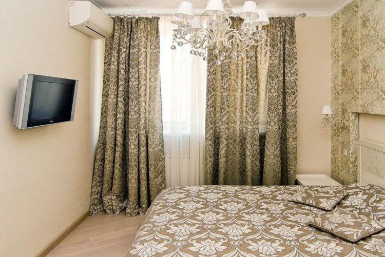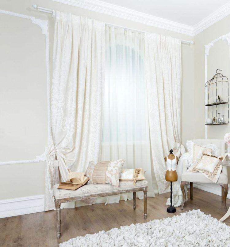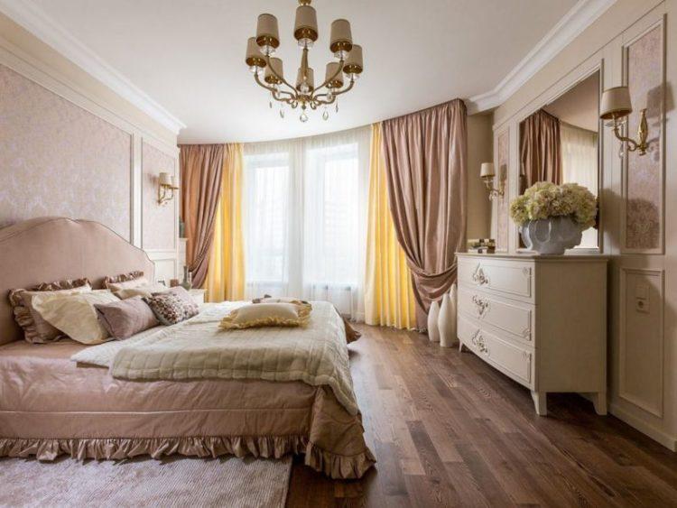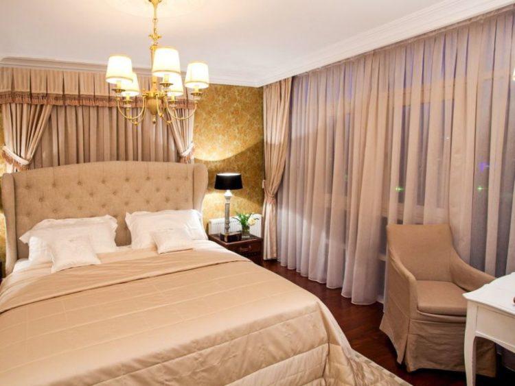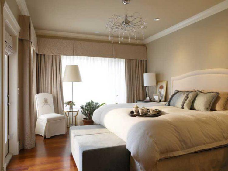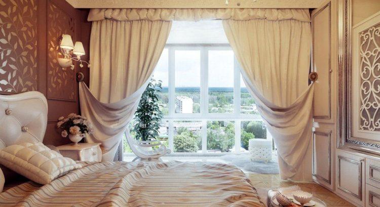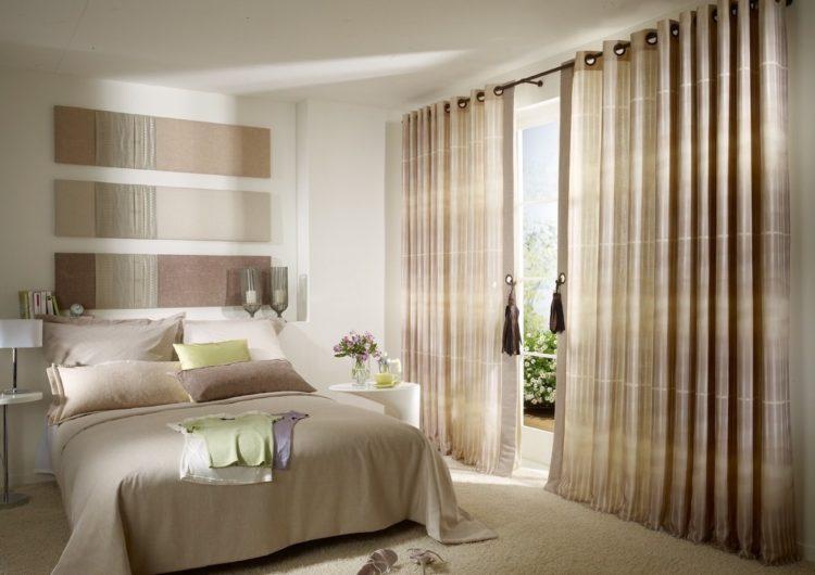 Cortinas ideales en el dormitorio en el estilo de provenza beige. Se combinarán bien con cualquier otra báscula, mobiliario y decoración general. Los tonos arena, caramelo y crema también pertenecen al beige. Ayudan a deshacerse de la agresión y hacen que la habitación sea más cómoda y pacífica. Con este color, se hacen hermosas cortinas clásicas en el dormitorio. Puede combinar ventajosamente varios tonos de este color eligiendo uno más claro y más oscuro.
