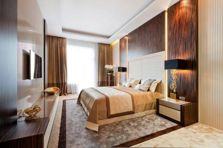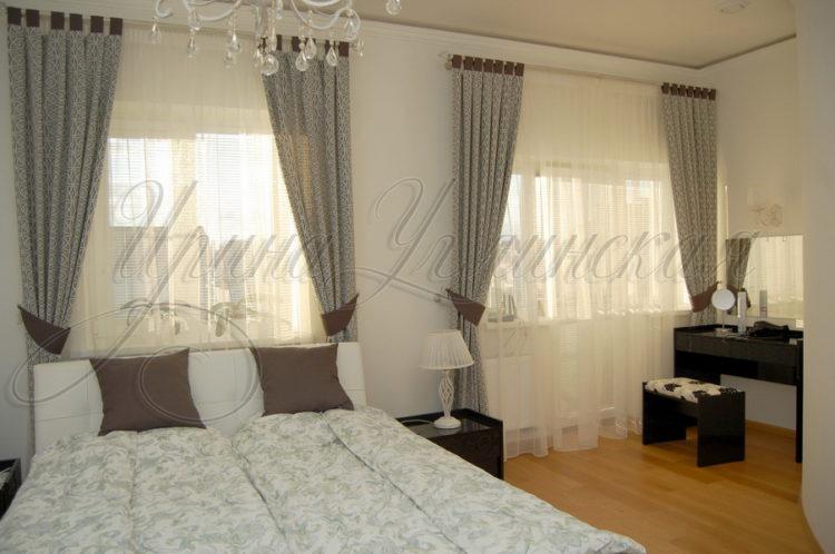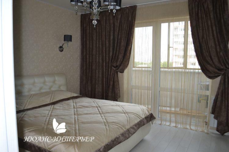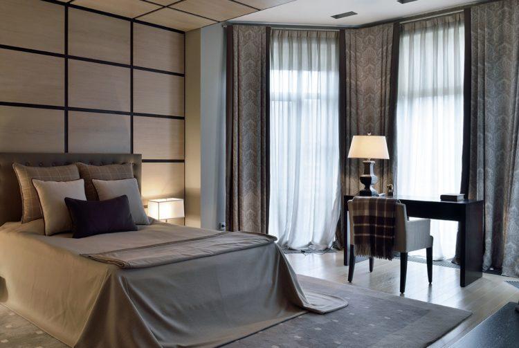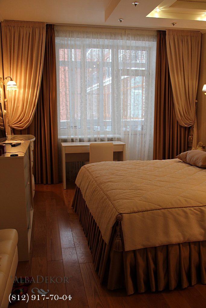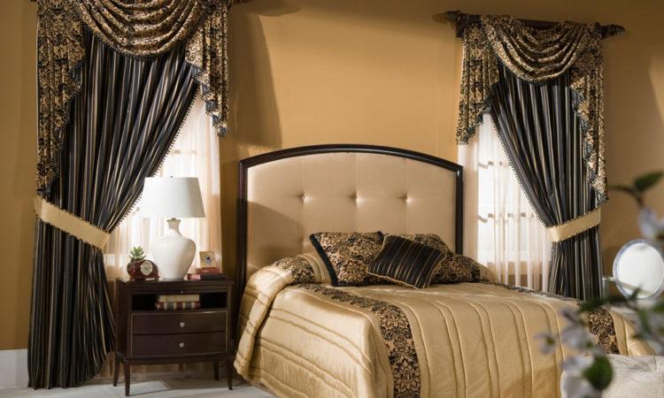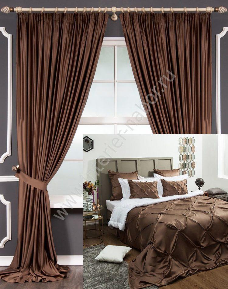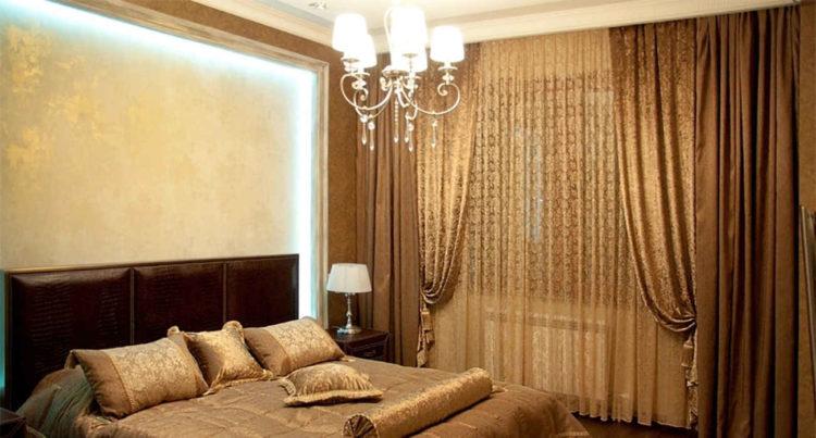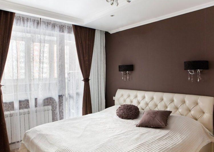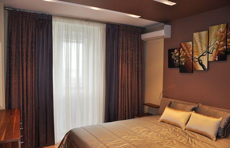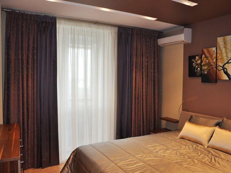 Recientemente, el color marrón se usa cada vez más en esta sala. Le permite concentrarse y combina bien con otros tonos, le da una sensación de seguridad, seguridad. Además, este color se atenúa bien, lo cual es muy importante para las cortinas en el interior de la habitación. La atmósfera resultante en la habitación se verá rica y noble. Piensa detenidamente en las combinaciones de colores. La habitación debe ser cómoda y cómoda para dormir. Explore las hermosas cortinas en las fotos de la habitación 2018: