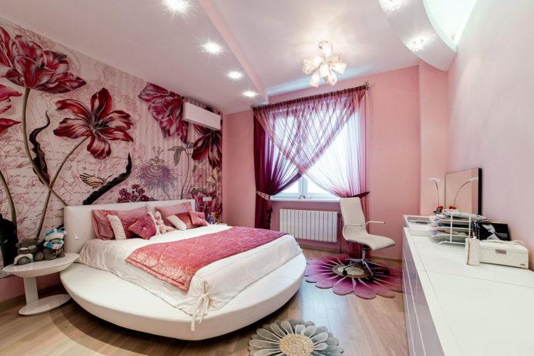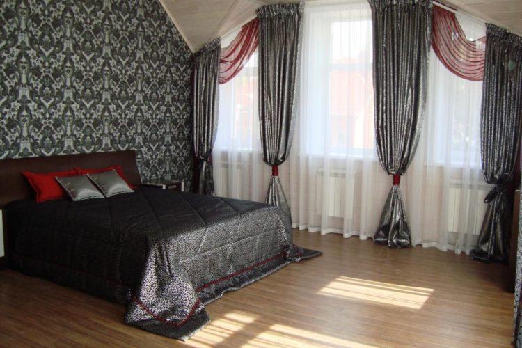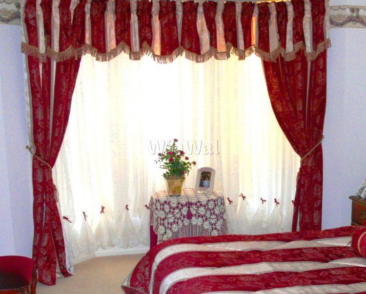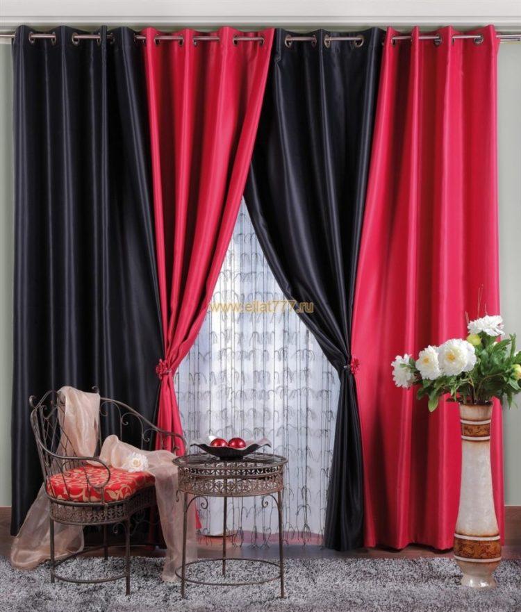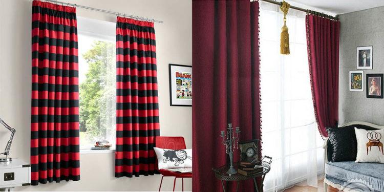 El color óptimo de las cortinas de la habitación en un diseño moderno en el que reina un ambiente romántico es escarlata, burdeos y rojo. Según la filosofía del Feng Shui, los tonos rojos simbolizan el poder del fuego, cuya energía afecta positivamente la relación de la pareja en el matrimonio. Si decide elegir cortinas rojas, preste atención al papel tapiz en la habitación. No deberían estar demasiado oscuros, porque en este caso el dormitorio resultará excesivamente sombrío y ejercerá presión sobre la psique. Estas cortinas se combinan mejor con papel tapiz gris claro, pastel o blanco.