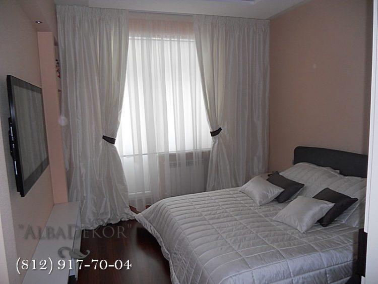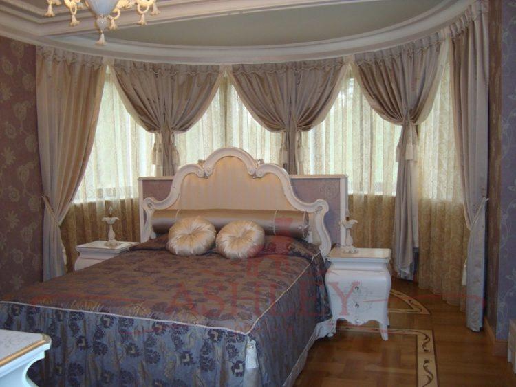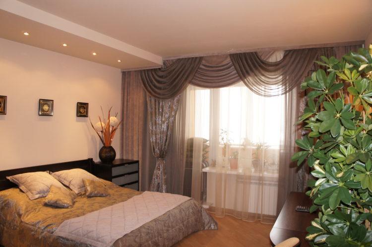Para el interior en colores saturados, son adecuados telas ligeras y fácilmente drapeadas, especialmente si los muebles del dormitorio son oscuros y voluminosos. Los tonos claros de las cortinas te ayudarán a despertarte fácilmente, alegremente temprano en la mañana, sin sentir molestias. Al elegir cortinas en el dormitorio (la foto de la novedad seguramente le interesará), tales tonos claros son adecuados: blanco translúcido, azul, rosa, cortinas de durazno, naranja brillante, amarillo, tonos verdes claros, burdeos, esmeralda, oro, café, tonos marrones. Estudie las cortinas para el diseño de la foto del dormitorio 2018, que se presentan a continuación y seguramente encontrará su opción.