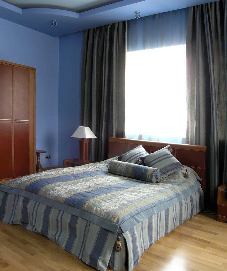 Puede elegir un tono azul para cortinas en el dormitorio. Simboliza calma y profundidad. Si la sombra no es demasiado cáustica, sino neutra, se establecerá para un sueño prolongado. Este color se verá bien en el interior de cualquiera de los estilos. El diseño de moda de las cortinas para el dormitorio (la foto de la novedad 2018 debería ayudarlo con esto), hecho en tonos azules, ayudará a que la habitación sea elegante y al mismo tiempo práctica.