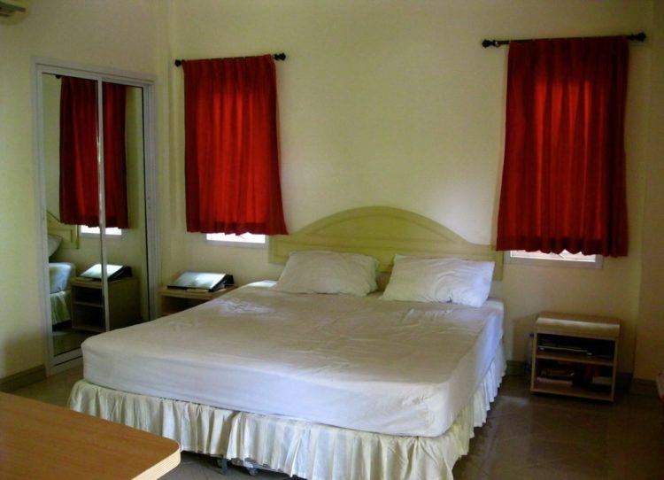 Las cortinas pueden ser simples y realizar la función práctica de oscurecer la habitación, pero también pueden convertirse en el acento artístico de la habitación. Para que el sueño durante el día sea cómodo, debe elegir cortinas densas a prueba de luz. Si entra un poco de luz del día en la habitación, puede pasar con tejidos ligeros.