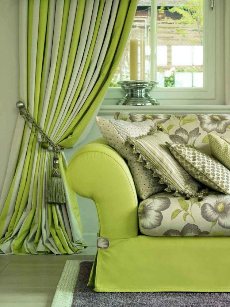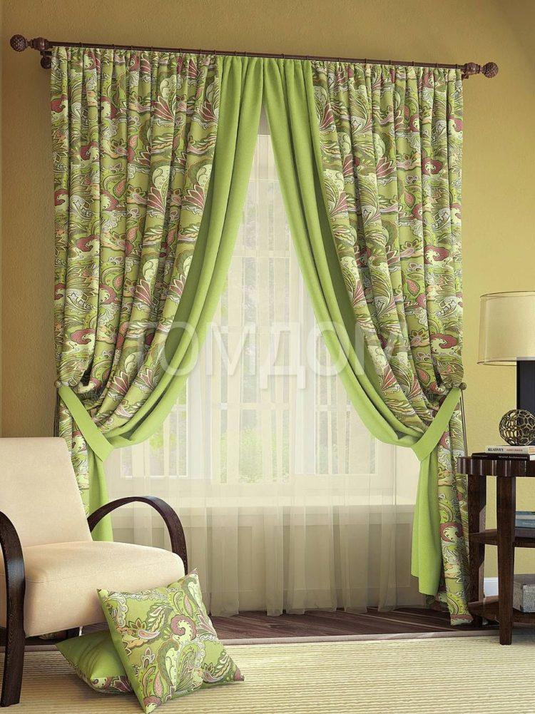 El uso de varios tonos de verde, desde el verde claro hasta la rica esmeralda, le permite agregar energía al interior de la habitación. Estos son los colores de la primavera y el verano, que simbolizan la vida y el crecimiento. Este color actúa en una persona con bastante tranquilidad y puede crear un efecto diferente para las cortinas dependiendo de la sombra. Por ejemplo, si la sala está dominada por un clásico, es mejor elegir un tono verde oliva. Explora las cortinas en el dormitorio foto 2018 clásico.