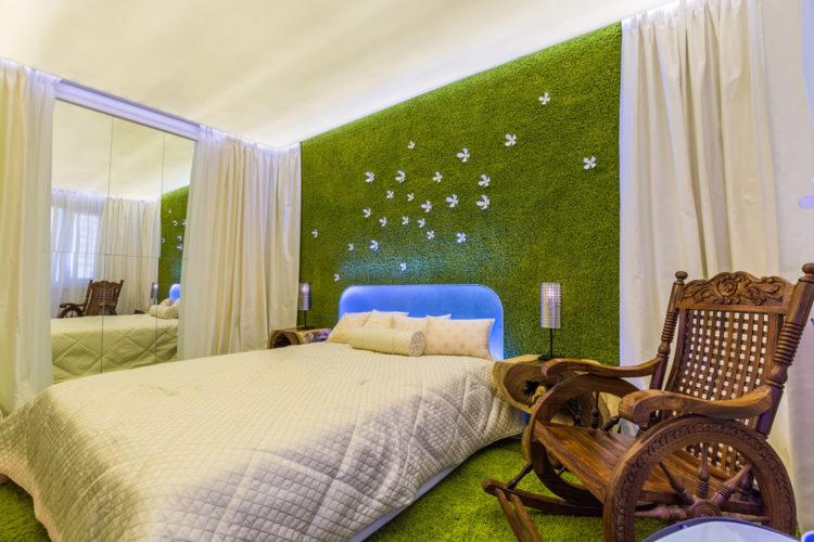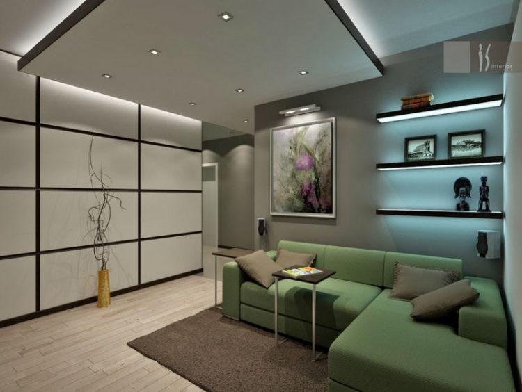 Si le gustan los colores brillantes, entonces la habitación de la sala de estar en una habitación en tonos verdes es definitivamente su opción.