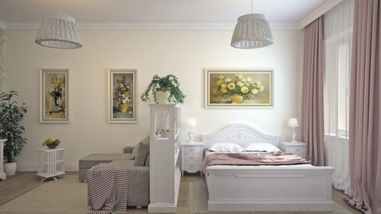 Luminoso dormitorio, sala de estar en una habitación, una opción clásica. Perfecto si la habitación es pequeña, ya que los tonos claros amplían visualmente cualquier habitación.